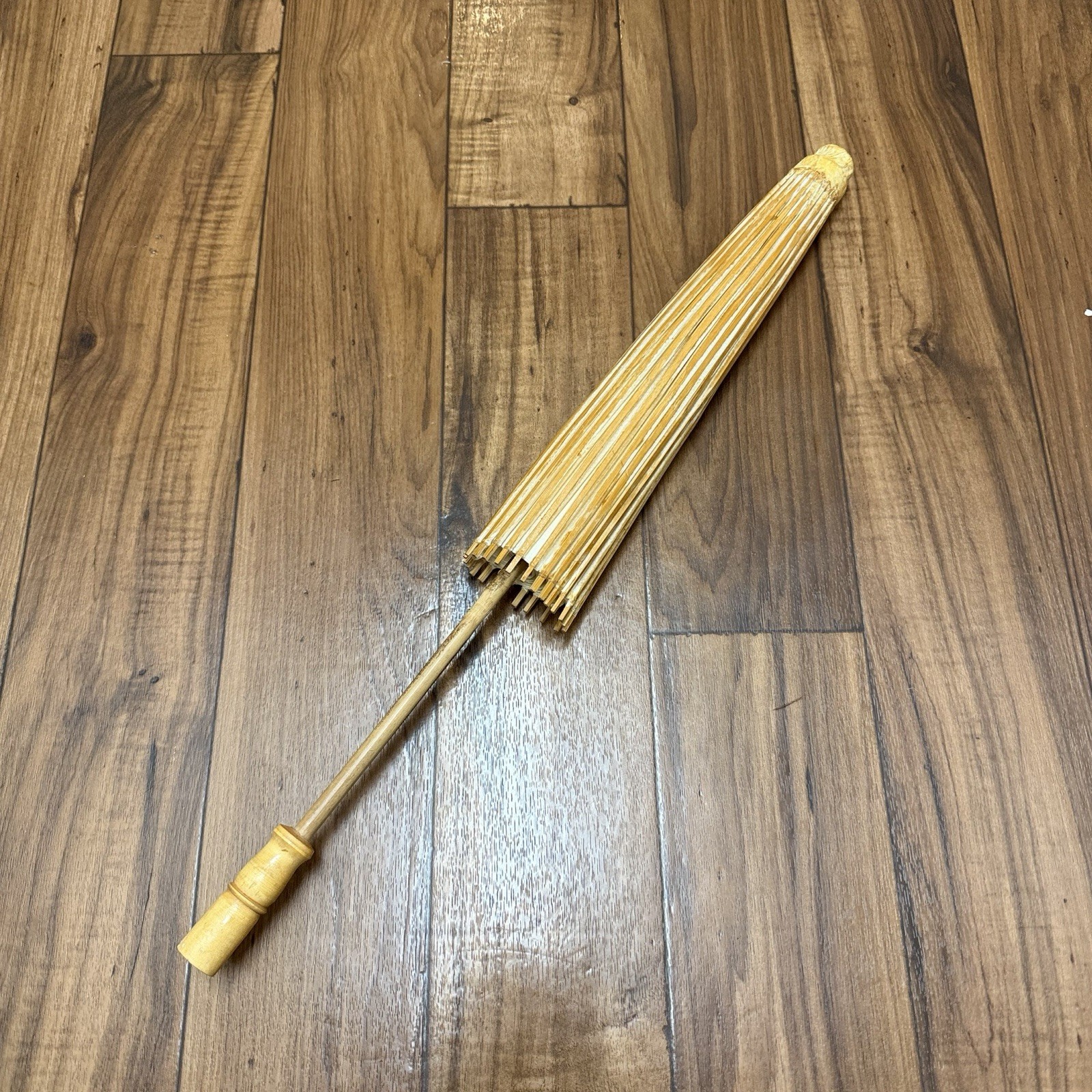 как выглядит Gorgeous Vintage Japanese Bamboo Paper Large Parasol Umbrella 27" Collectible фото