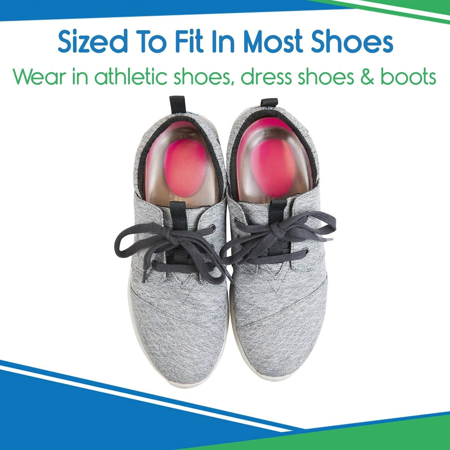 Gel Heel Cups Pair - Silicone Cushion Insert Pads for Pain Relief, Plantar Fas