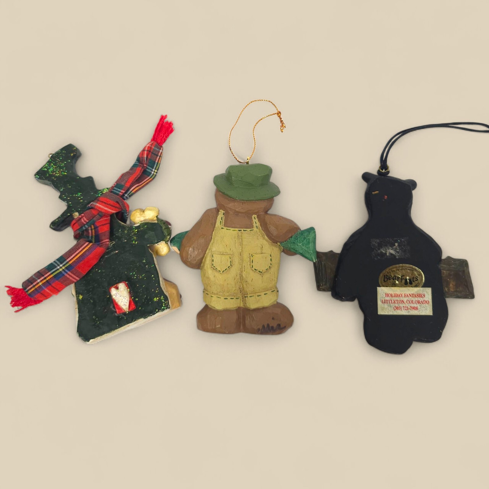 • Bearfoots Jeff Fleming Ornaments Lot 3 Yellowstone 2002 Bear Fishing Snowman Dog