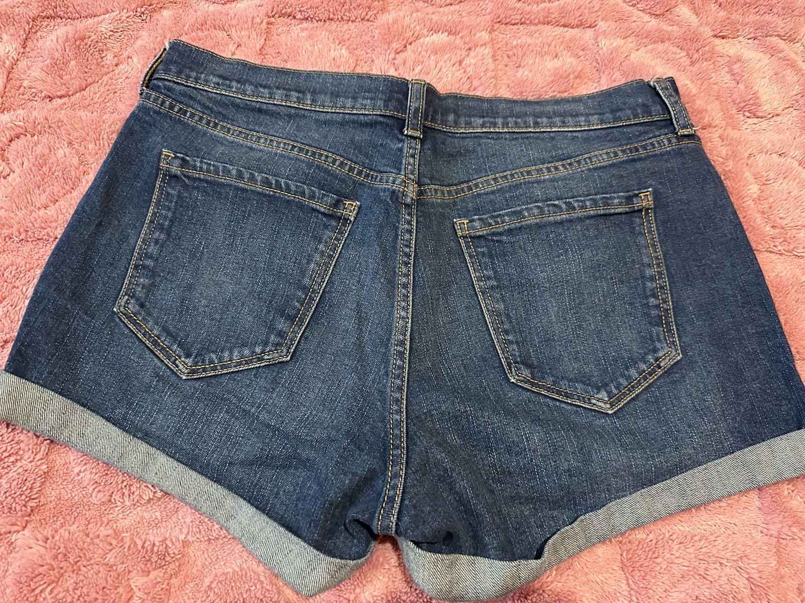 Old Navy Boyfriend Mid-Rise Blue Denim Shorts Size 8 Distressed Cuffed Stretch