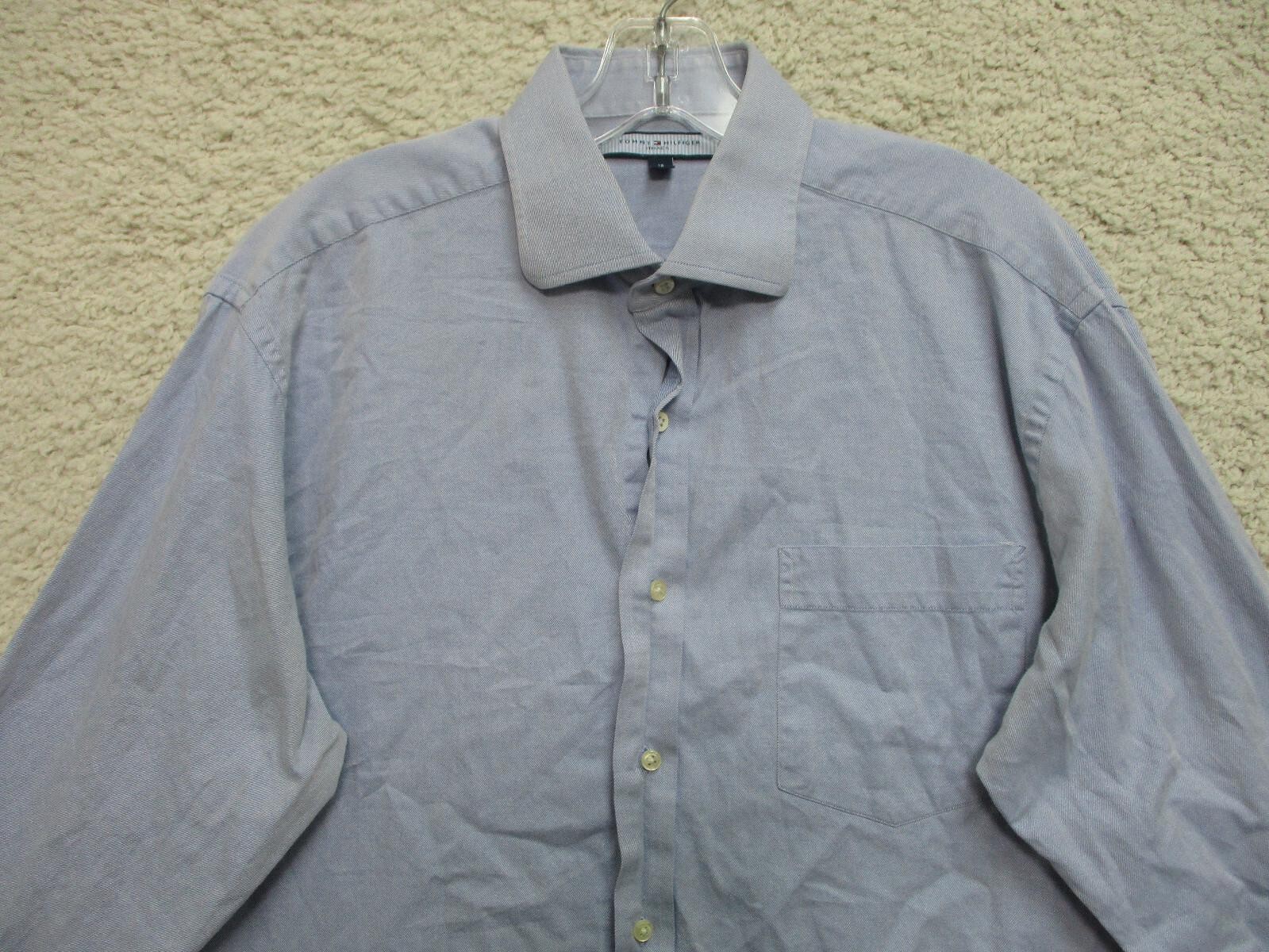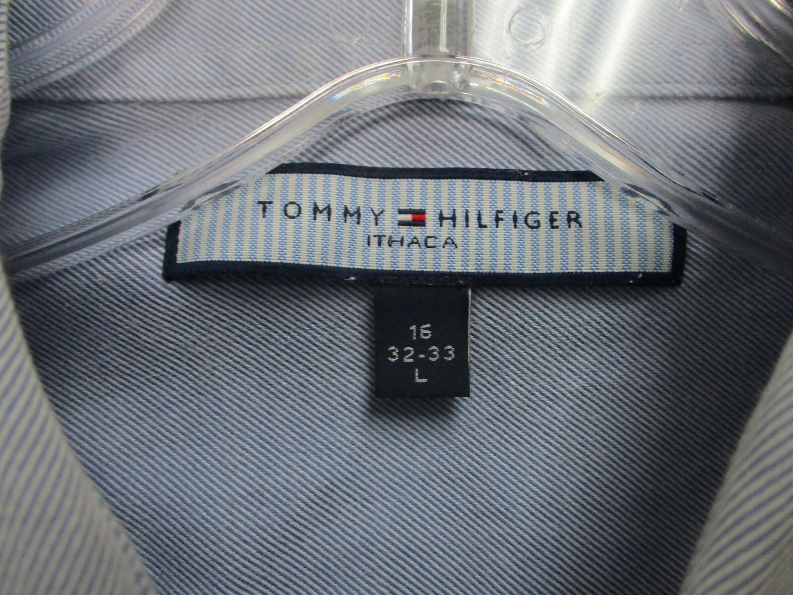 как выглядит Tommy Hilfiger Button Up Shirt Large Adult Blue Ithaca Pockets Long Sleeve Mens фото