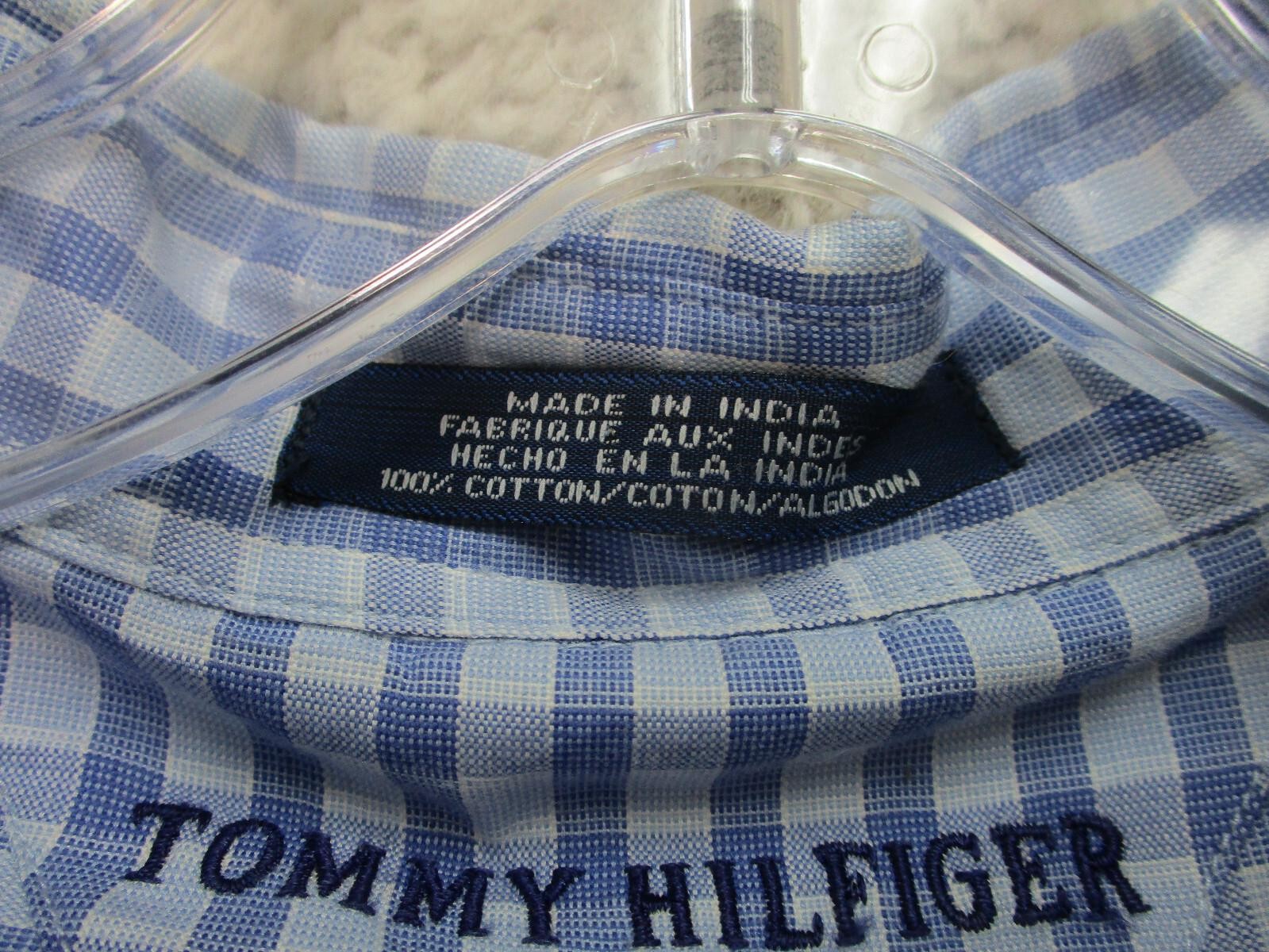 как выглядит Tommy Hilfiger Button Up Shirt Extra Large Adult Blue Gingham Plaid Pocket Mens фото
