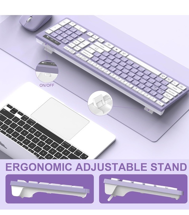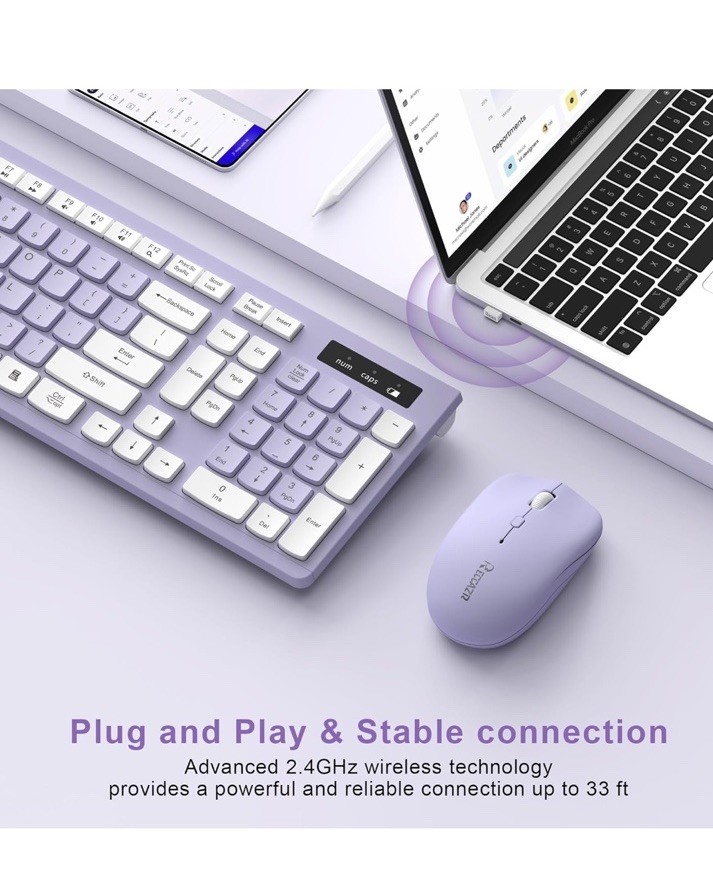 Reccazr Wireless Keyboard and Mouse Combo, Full-Sized Wireless Keyboard Purple
