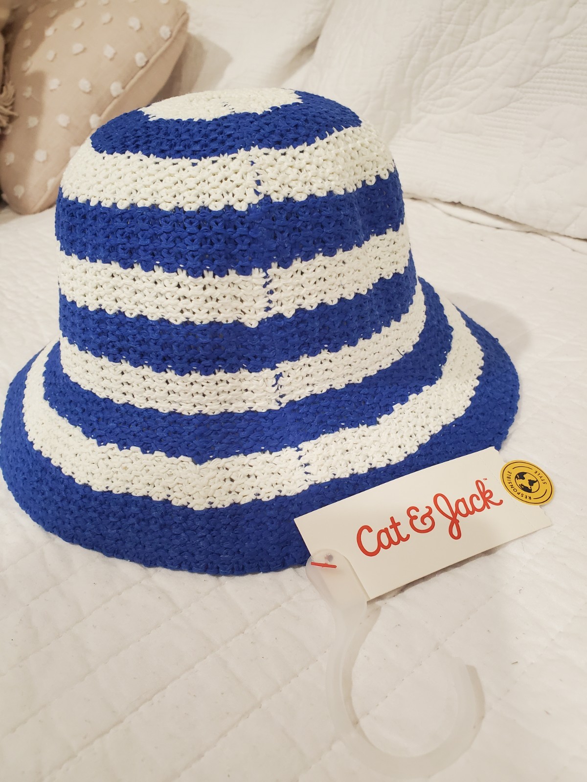 Cat Jack Girls Bucket Hat Blue White Strips Summer Spring Hat