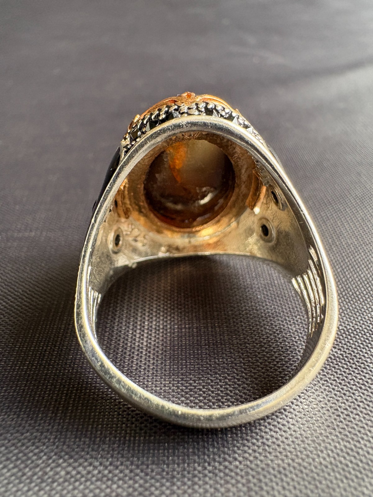 как выглядит 925 Sterling Silver Ring Yemeni Agate Aqeeq Stone Ring Handcrafted Size 9.75 US фото