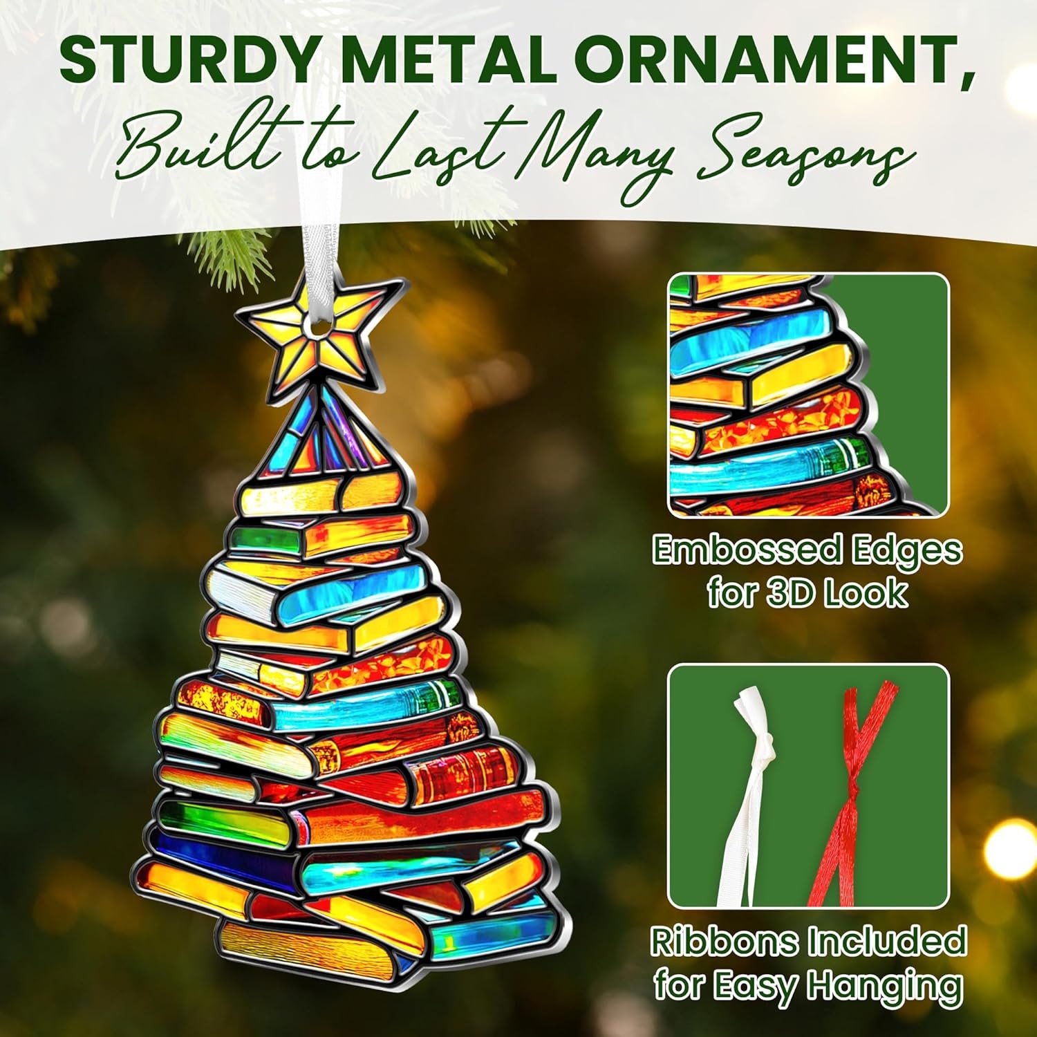 Christmas Book Lovers Gifts for Women Men - Metal Christmas Ornaments 2025 for T