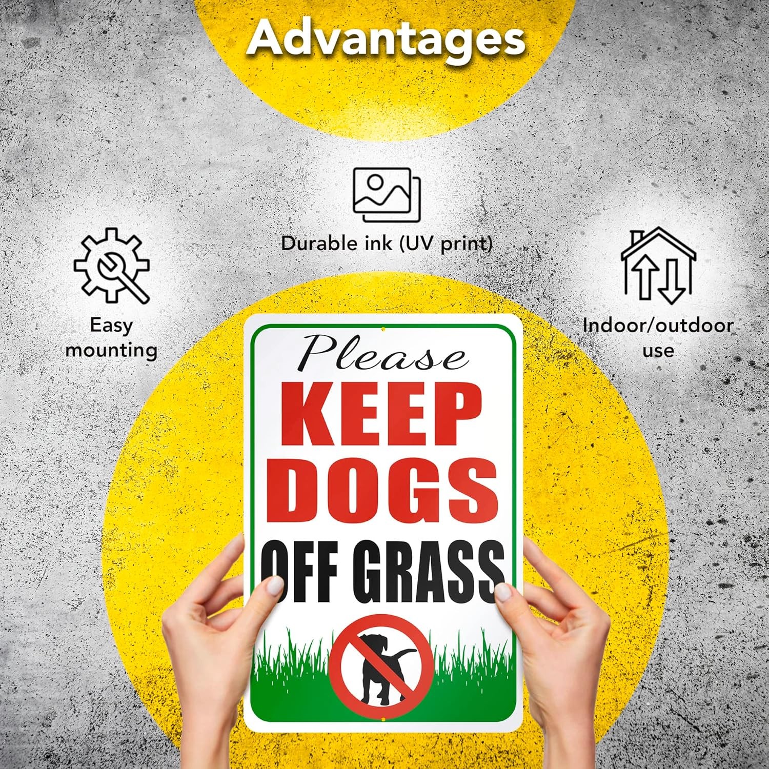 • Please Keep Dogs Off Grass Sign - 8x12 No Peeing No Pooping Dog Tin Metal Signs