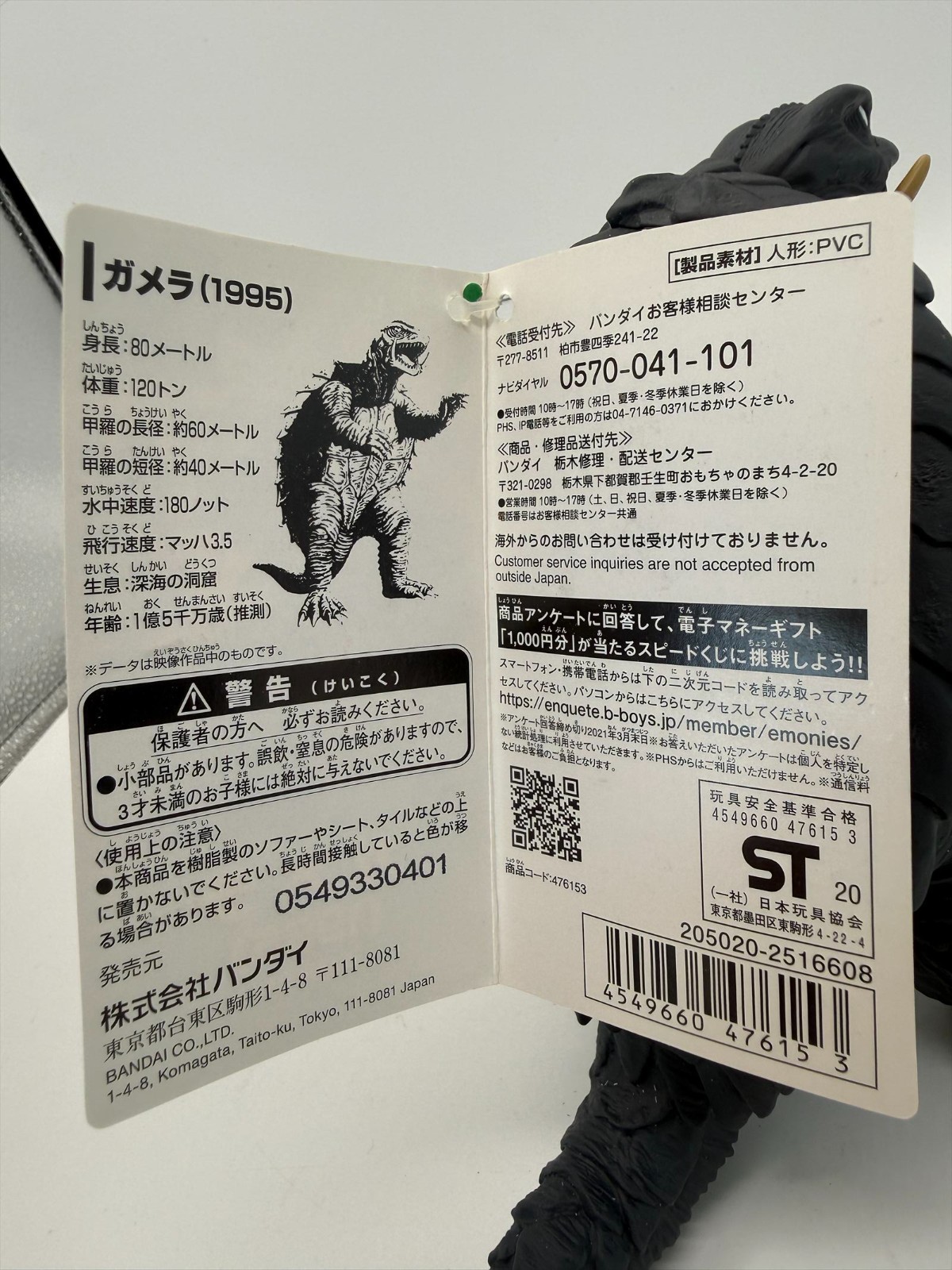 2020 Movie Monster 5 1/2 Gamera 1995 Figure WITH TAG Daiei Godzilla Bandai