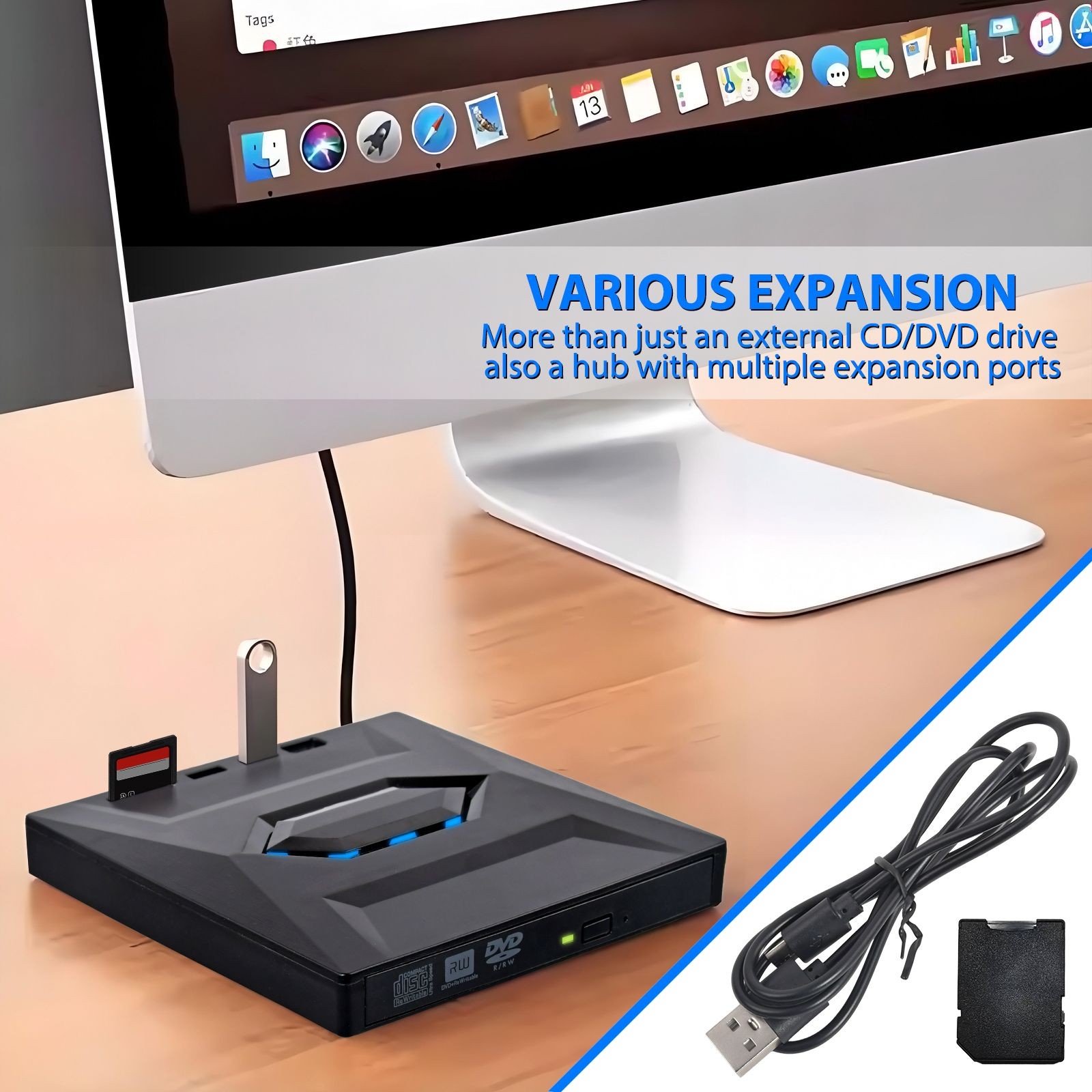 External CD DVD Drive for PC Laptop Windows 11 /10 USB 3.0 Burner Reader Writer