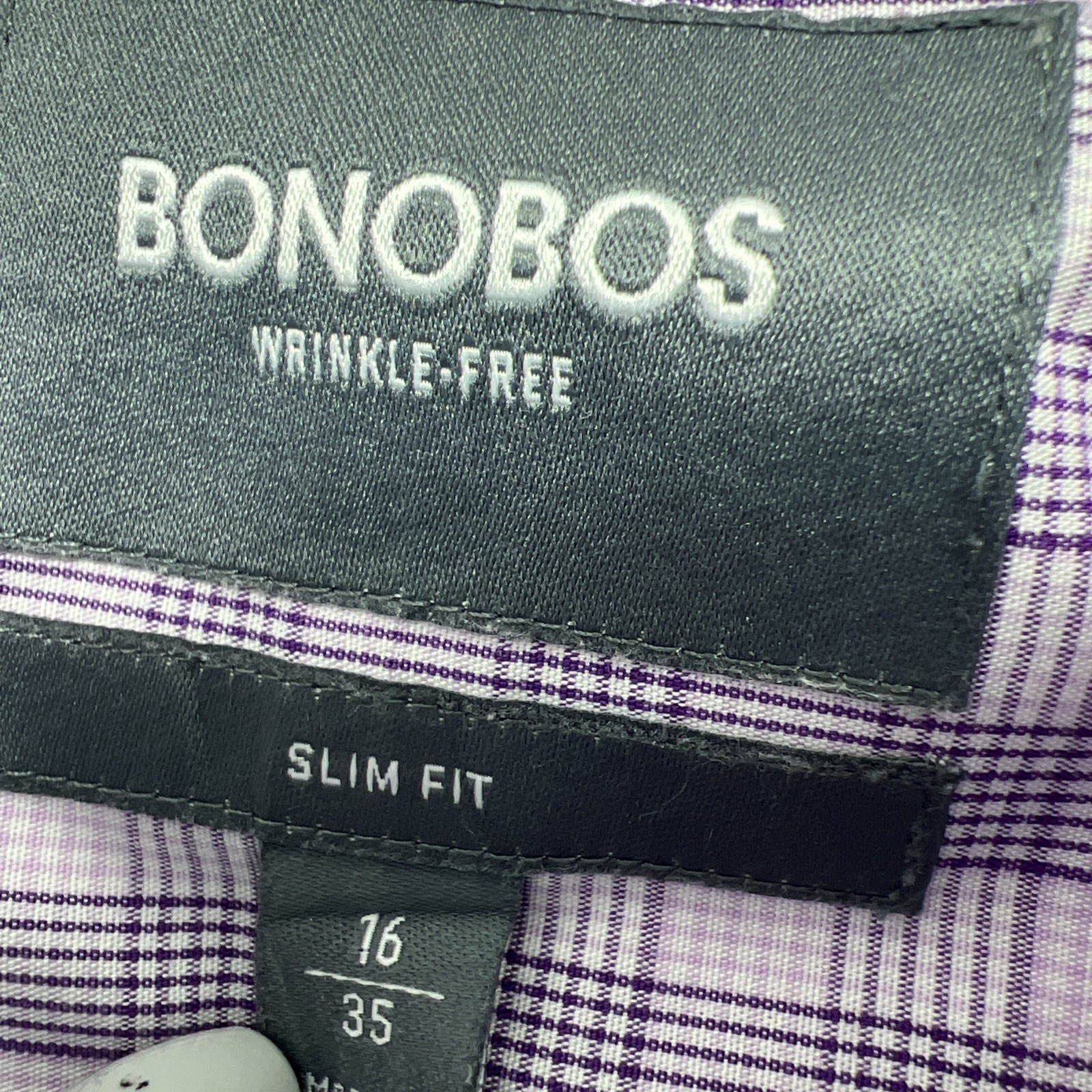 Bonobos Slim Fit Button Up Wrinkle Free Long Sleeve Shirt Men 16-35 Purple Check