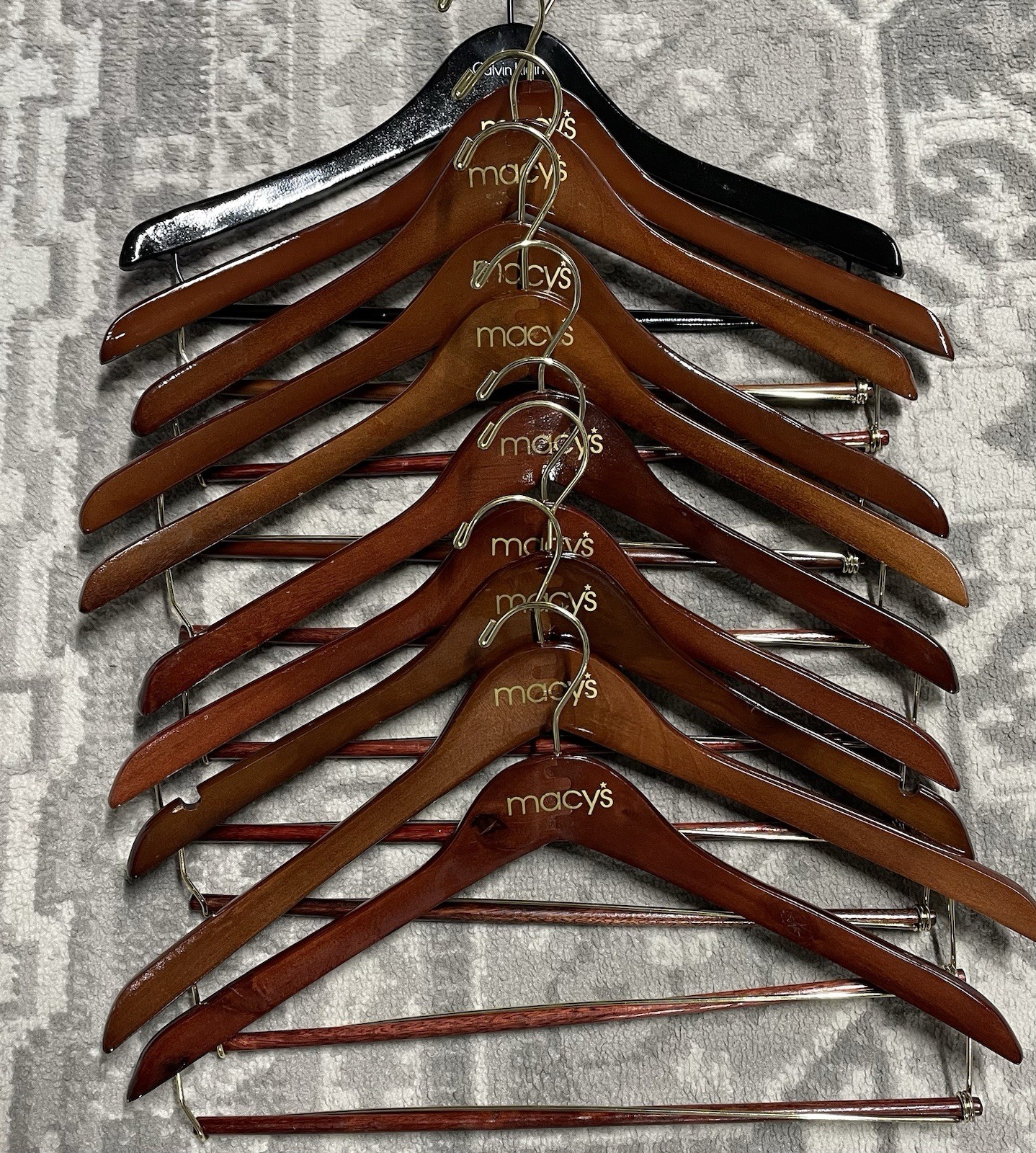 Macys Wooden Hangers Pant Suits And Jackets 9 Dark Wood 1 Black CK 3 Brooks Bros