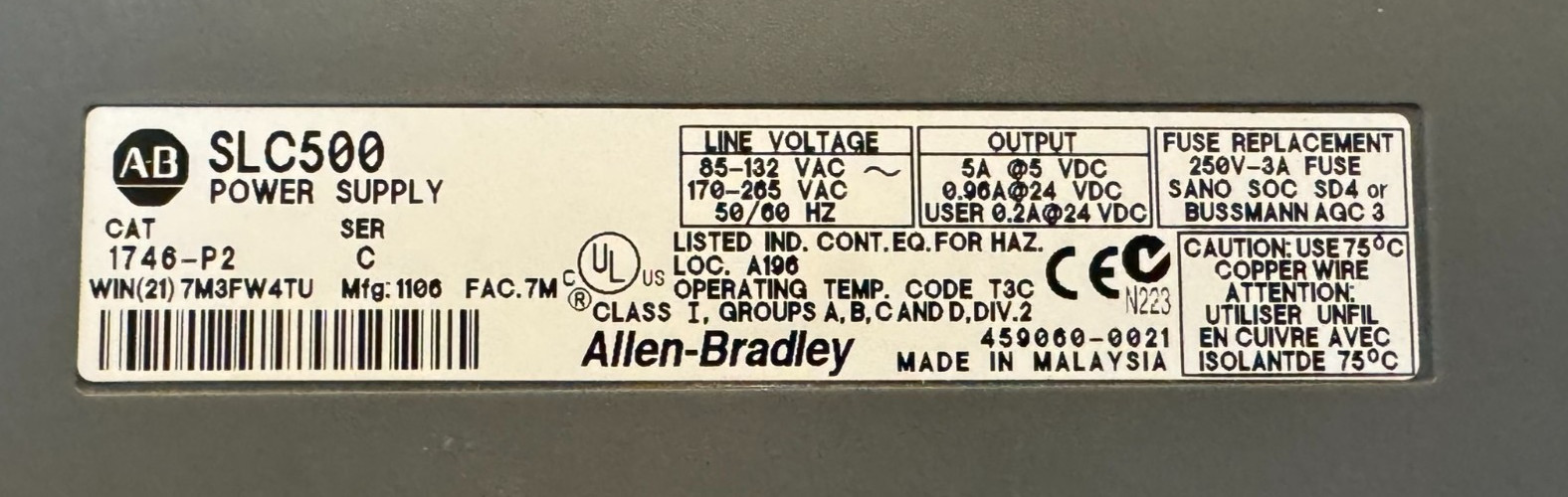 Модель: 1746-P2 1746-OW16 1746-NIO4V 1747-SN IB16