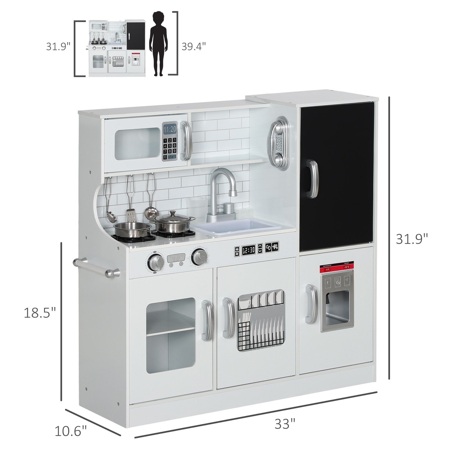 Young Kids Cooking Playset 33x10.6x31.9inch with Sink Stove and Cabinet White