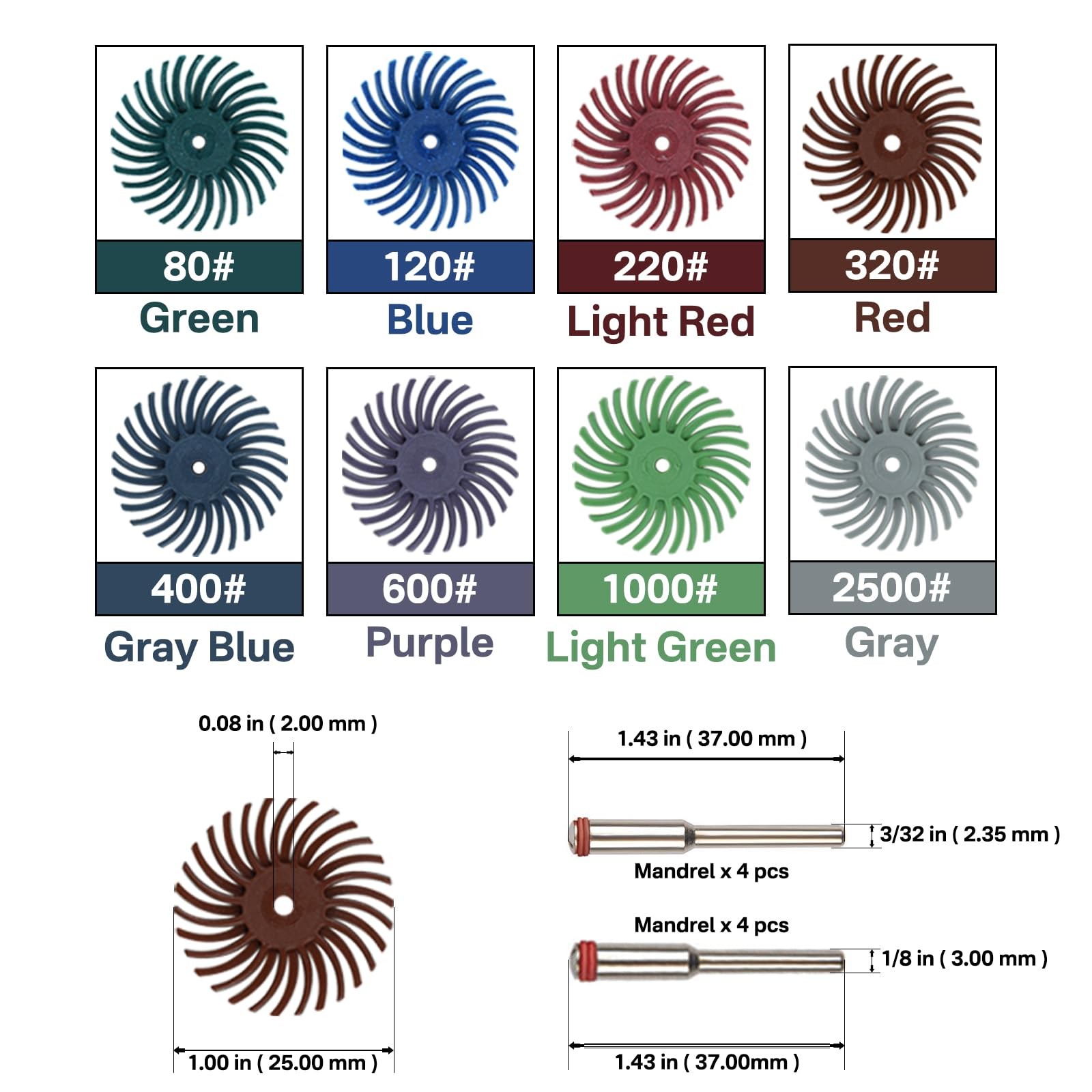 Included Components: 80Pcs Radial Bristle Disc, 8Pcs Shank, 1Pc Box