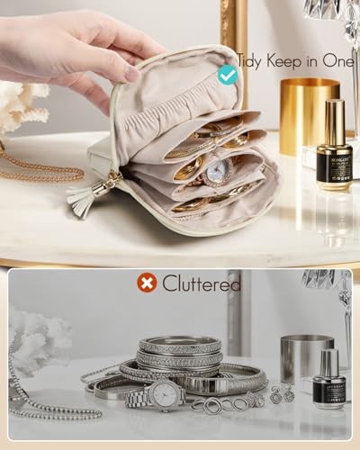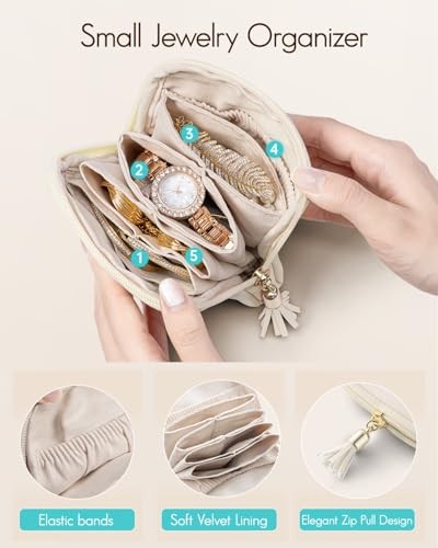 Mini Jewelry Travel Case,Jewelry Pouch Bags with Zipper, Velvet Jewelry White