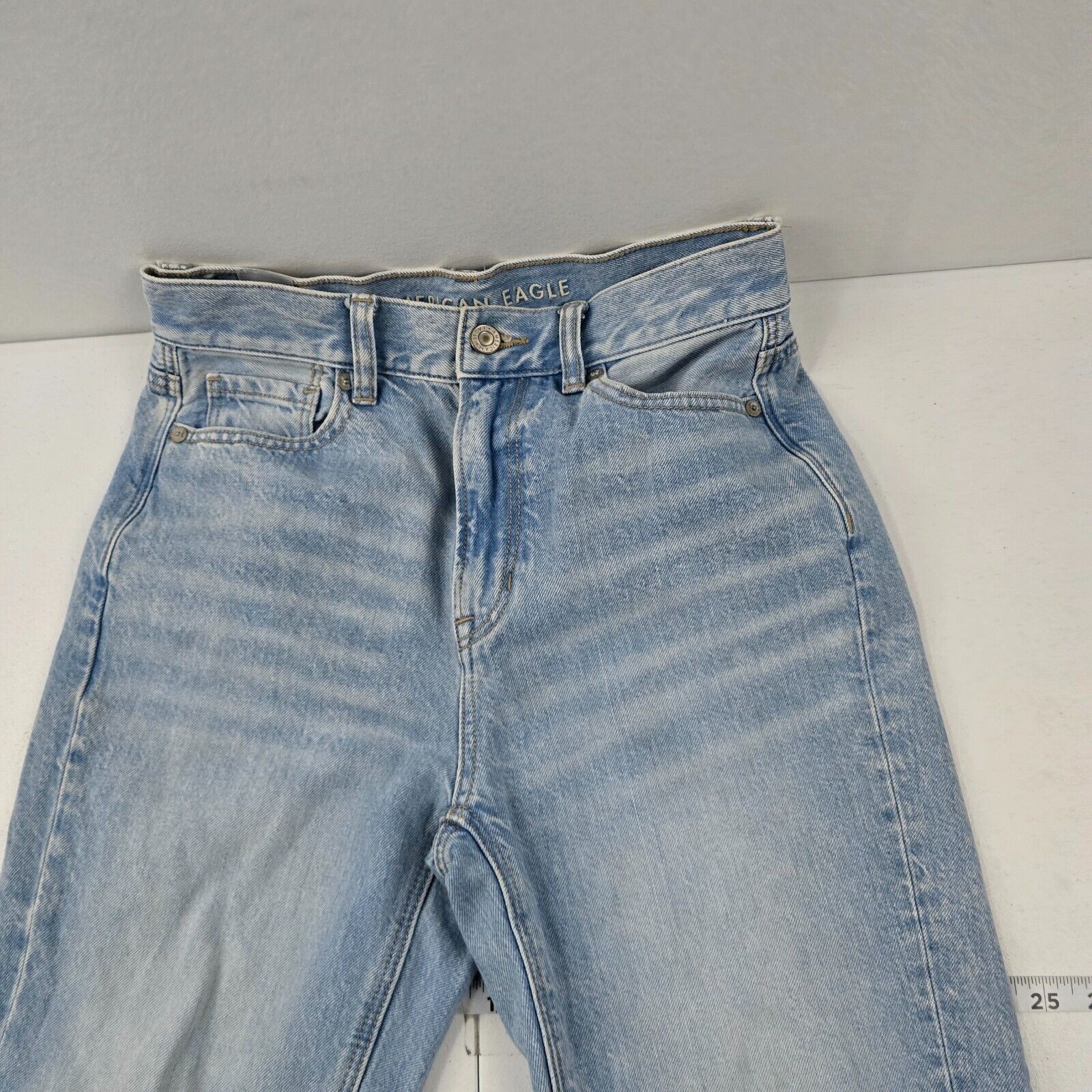 American Eagle Mom Jeans Light Wash 100 Cotton Size 0 Regular 4257