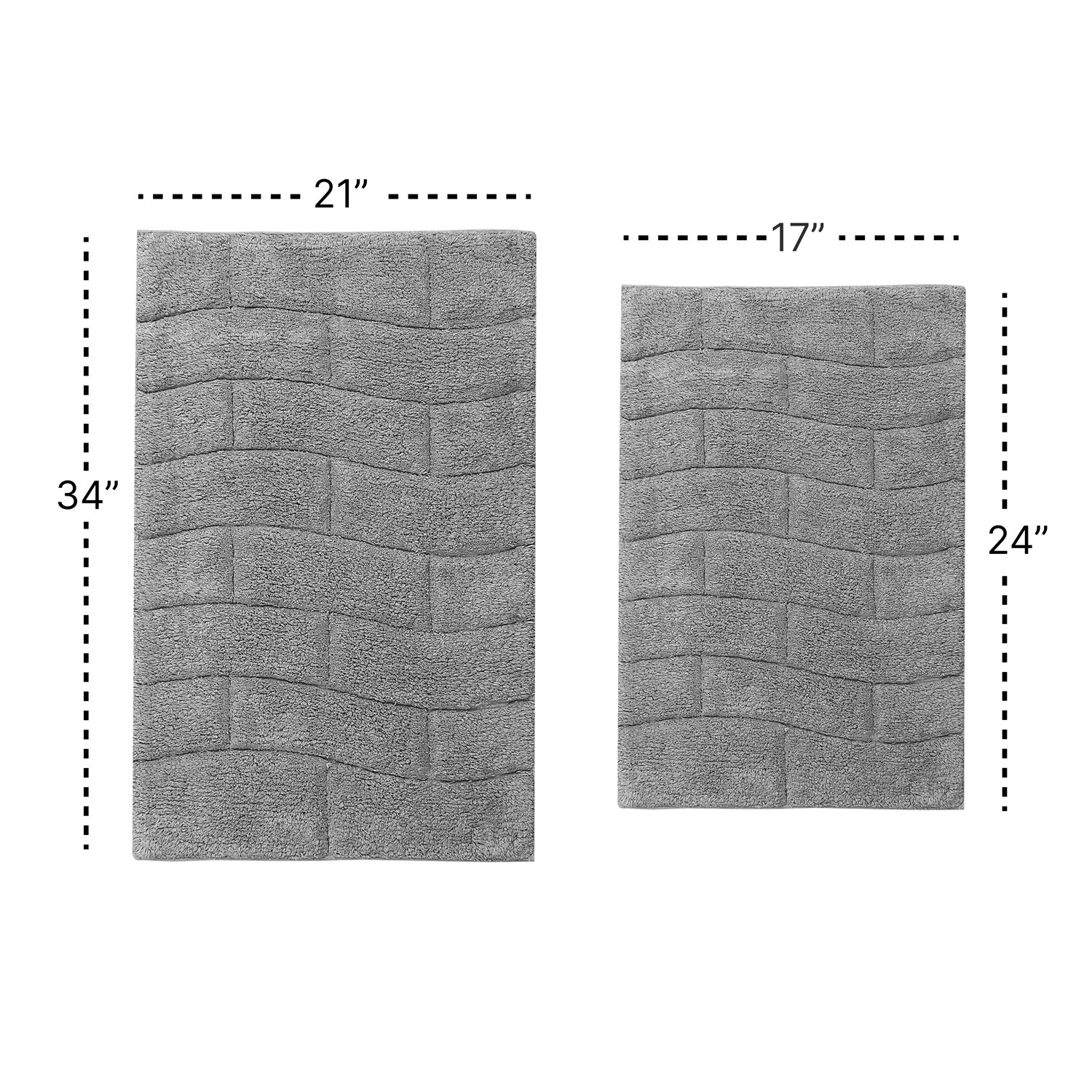 Knightsbridge Stylish New Tile Design Cotton Bath Rug 21 X 34 Silver
