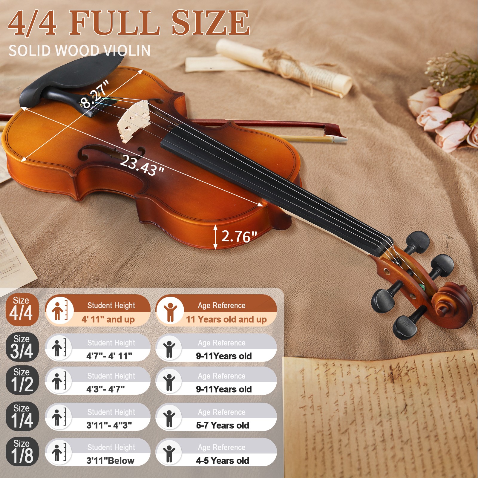 New 4/4 Full Size Natural Color Acoustic Violin w/ Case Bow Rosin