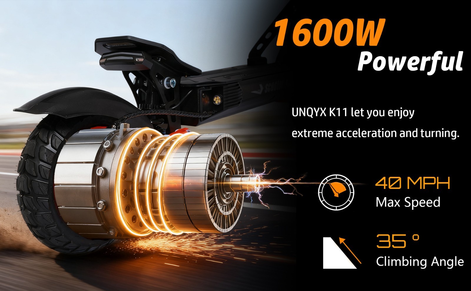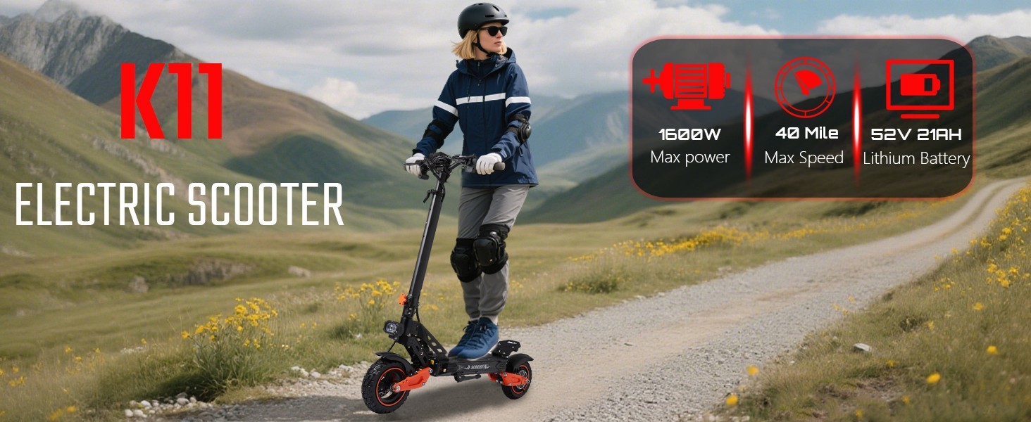 1600W Foldable Electric Scooter, 11'' Off Road 40MPH 34 Miles Commuter E-Scooter