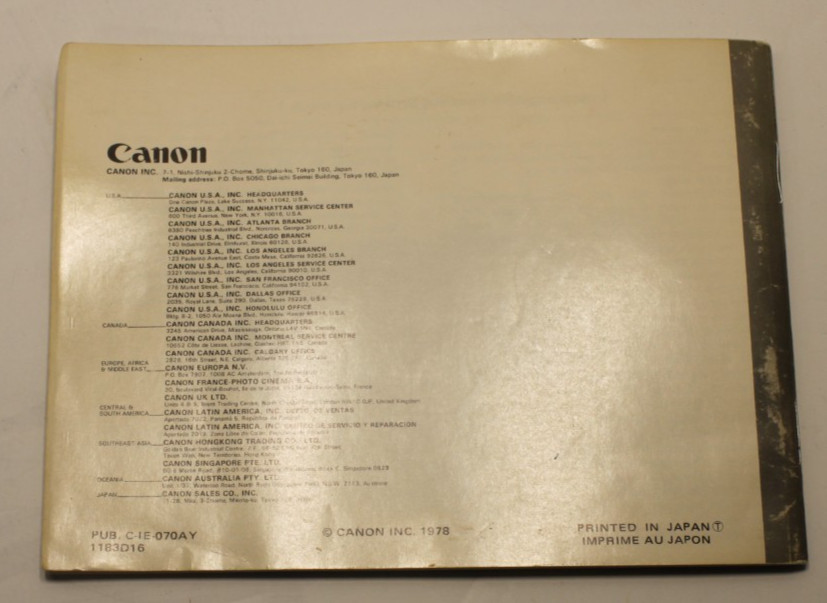 Canon A-1 SLR 1978 Camera Instruction Manual - English