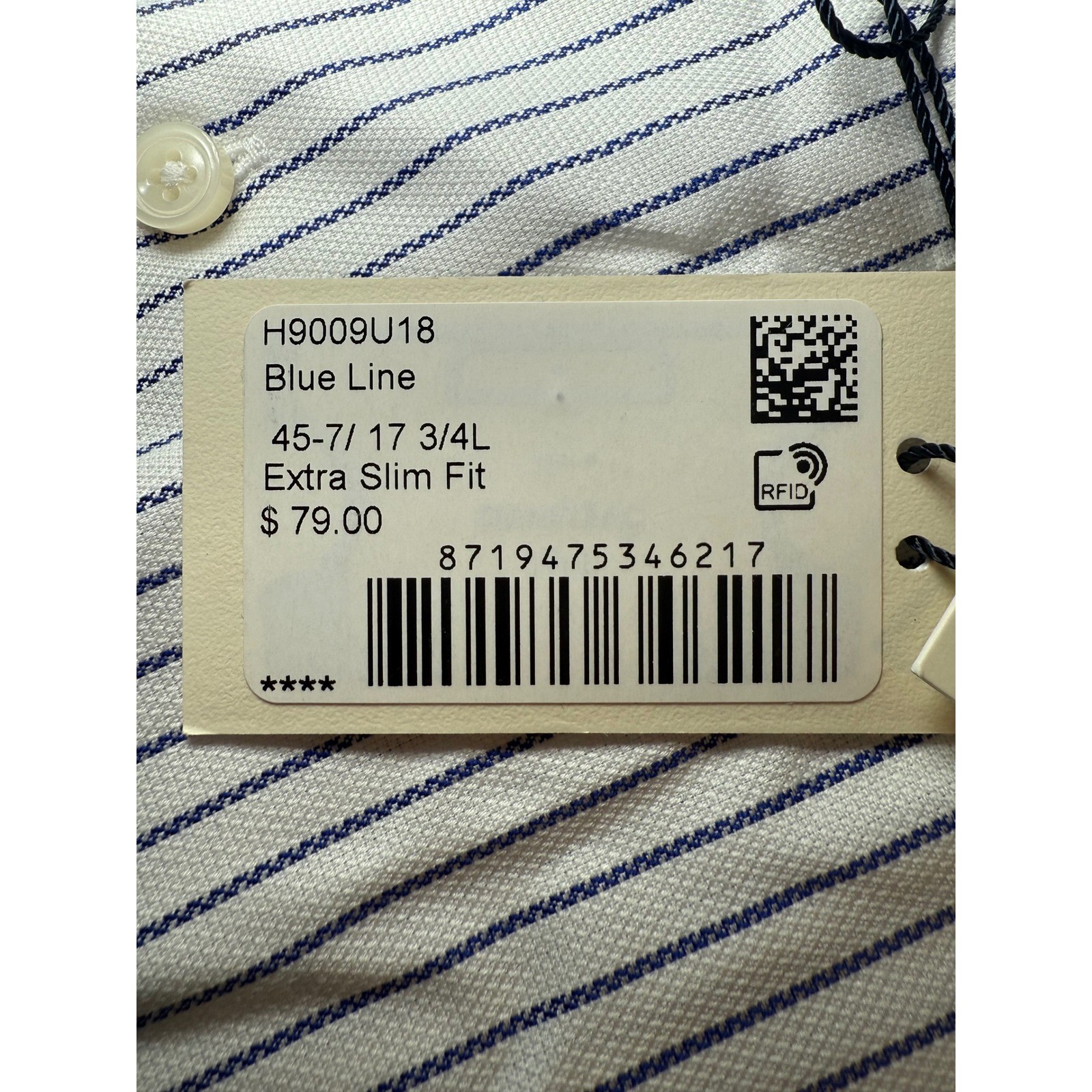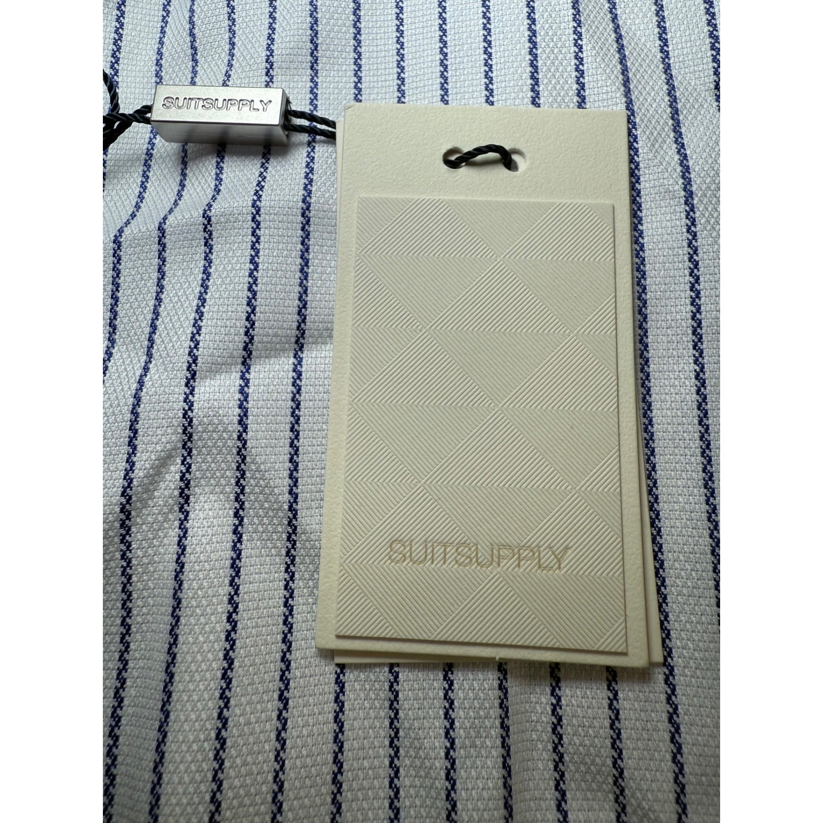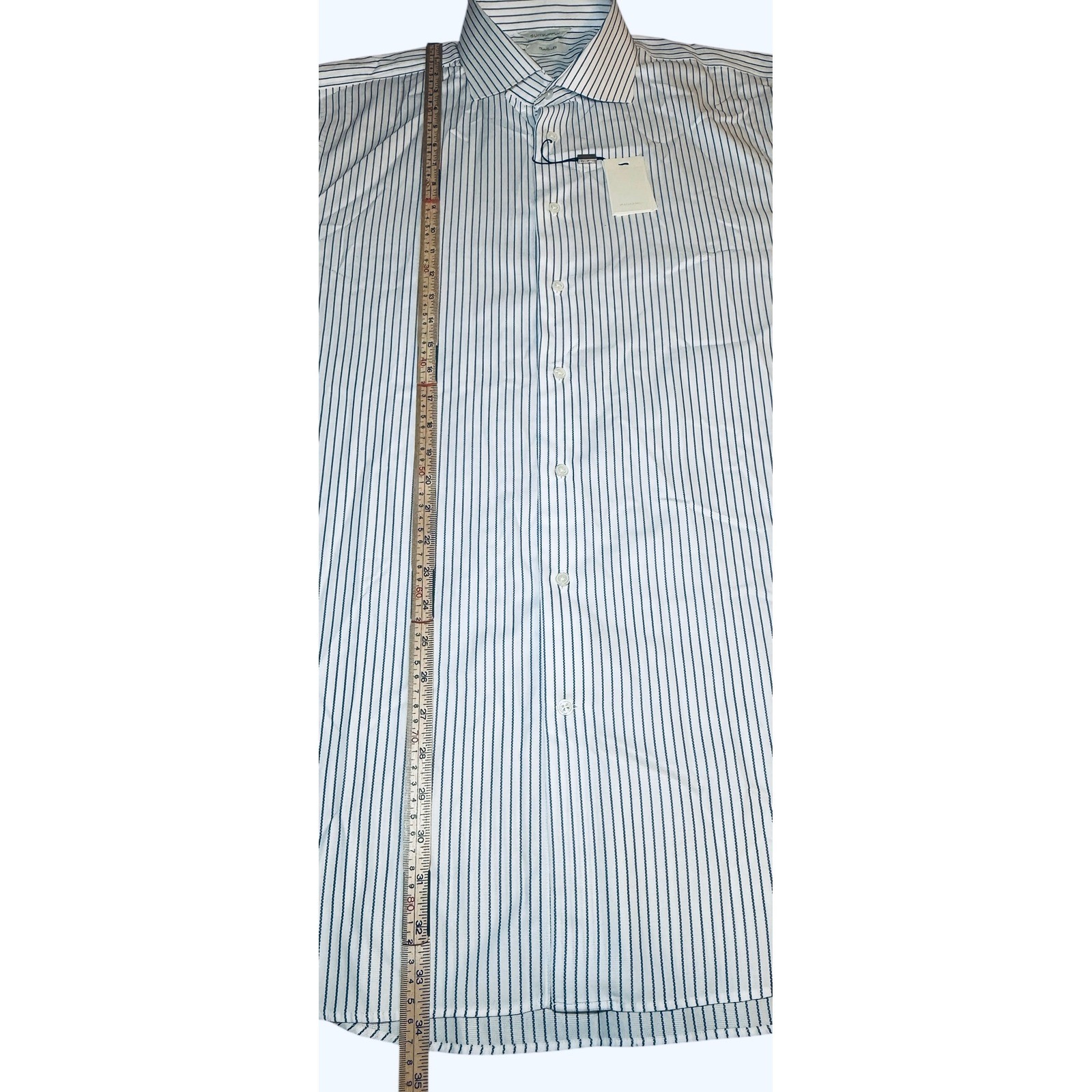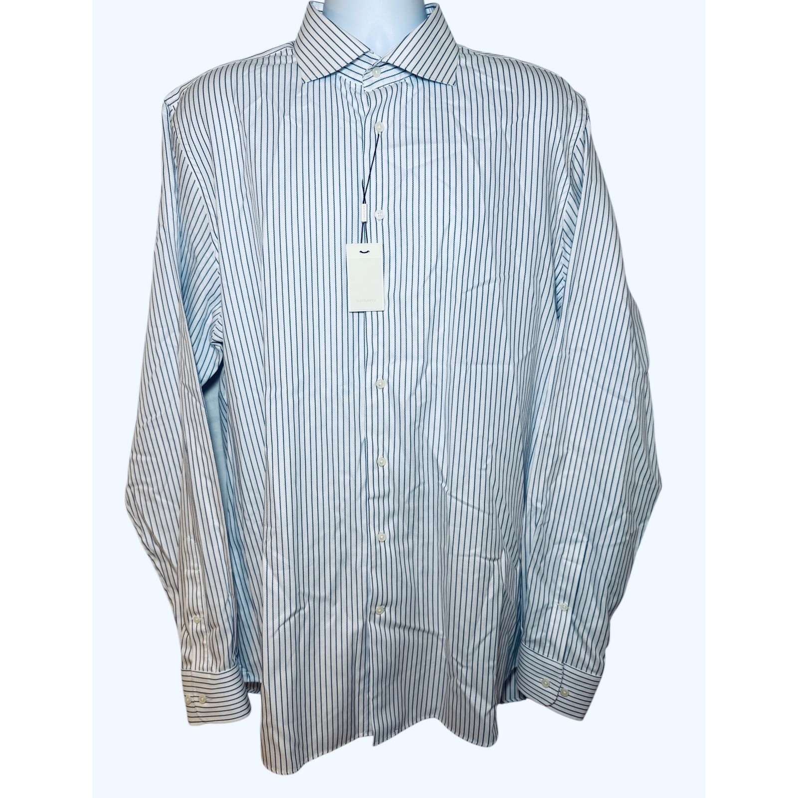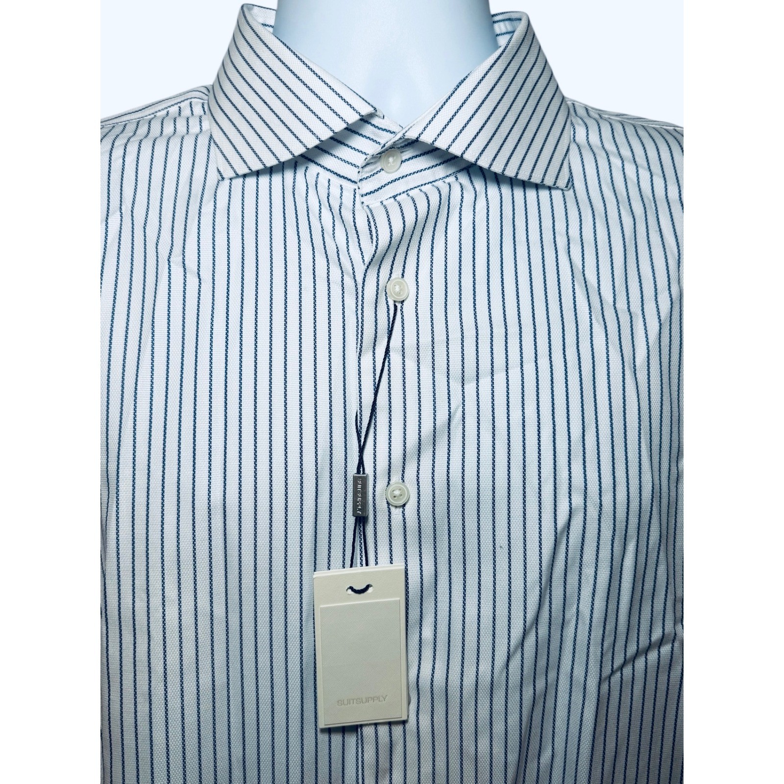как выглядит SUITSUPPLY Traveller Dress Shirt Mens 45-7/ 17 3/4 L Extra Slim Fit Blue Striped фото