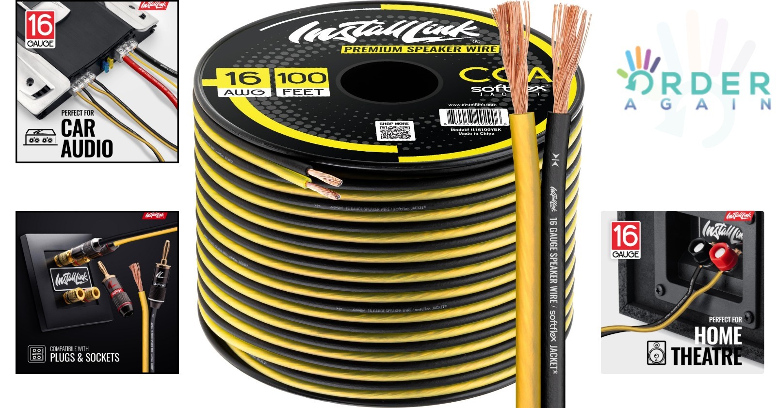Speaker Wire 16 Gauge CCA 100 Feet Car Home Theater Audio Copper Aluminum