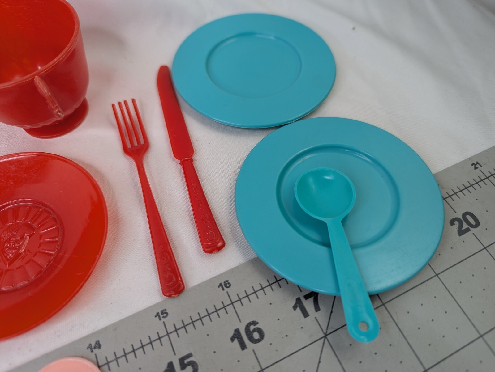 как выглядит Plasco Toy Cup Saucer Knife Fork Lot Extra Vintage фото