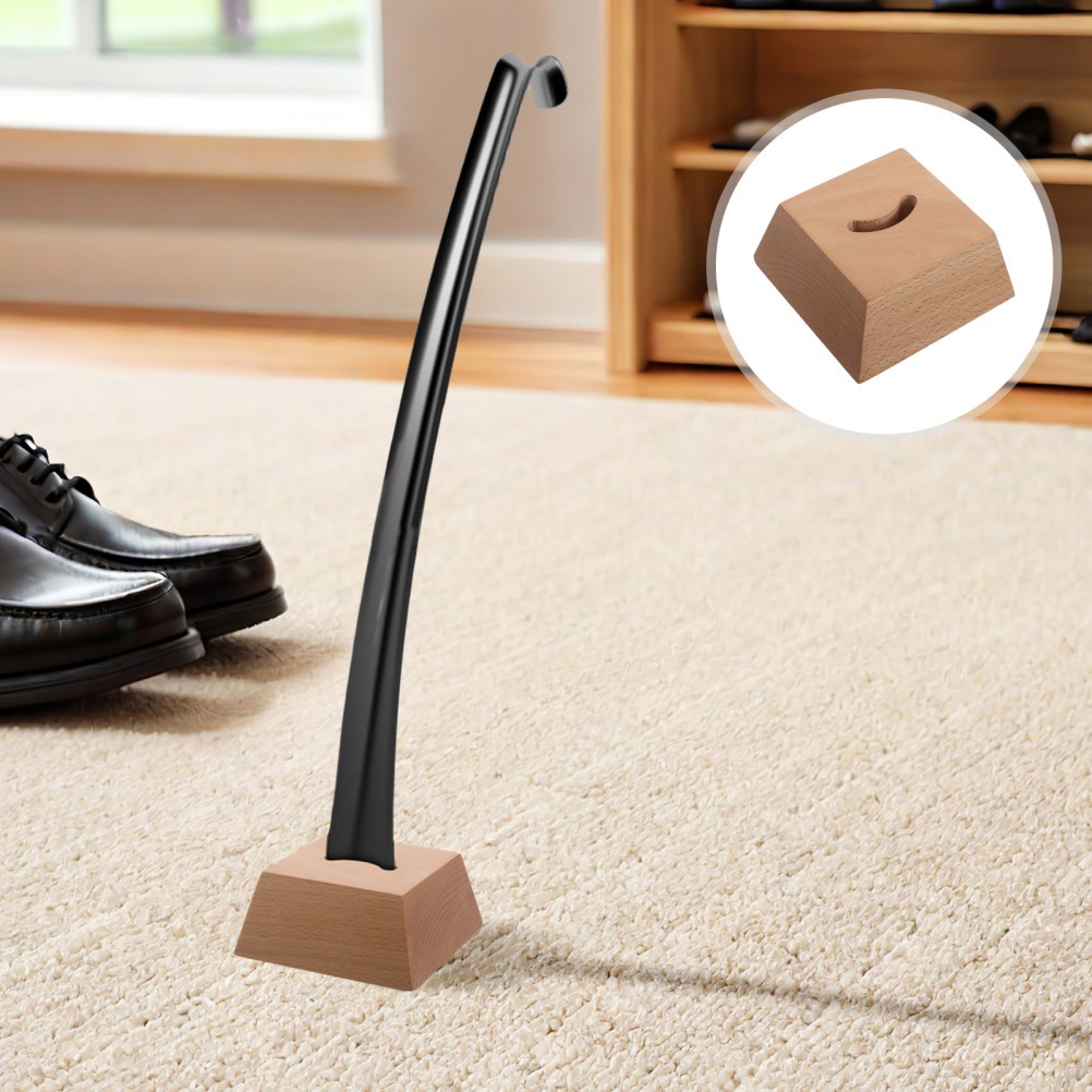 как выглядит Solid Wood Shoehorn Base Wooden Countertop Stand Entryway Holder for фото