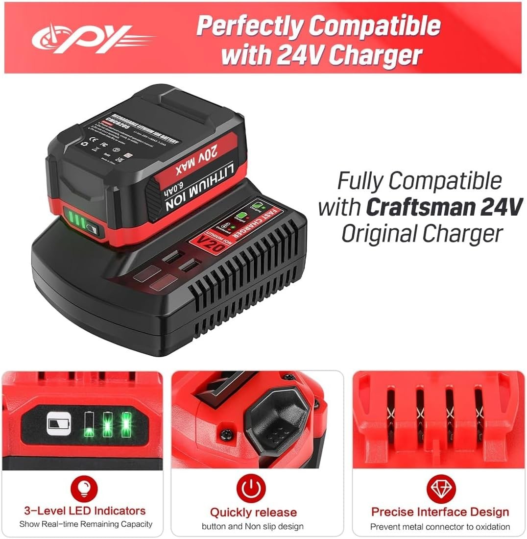 4PACK 20V Max 6.0Ah For Craftsman 20 Volt Li-Ion Battery CMCB206 CMCB204 CMCB202