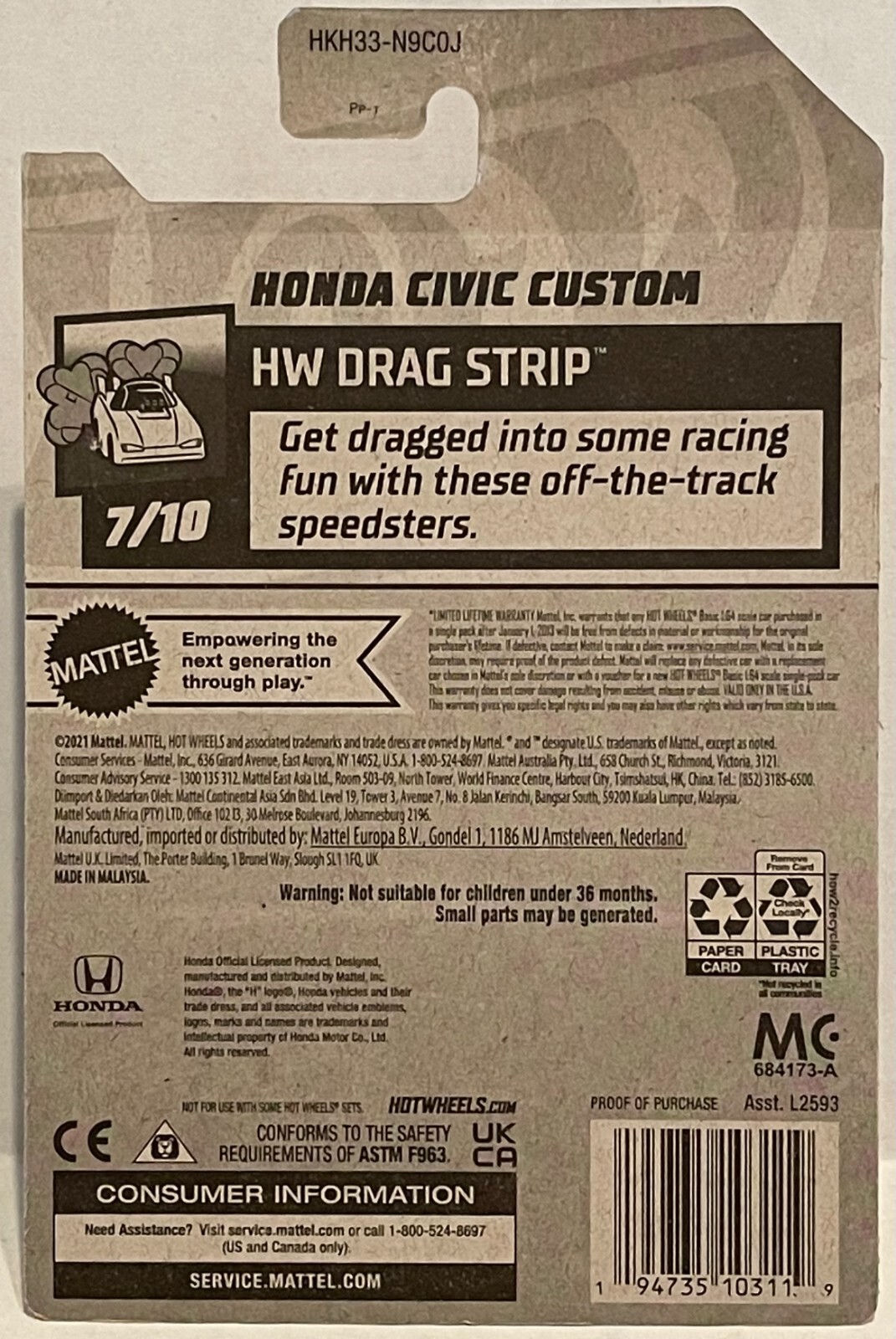 как выглядит HW HONDA CIVIC CUSTOM 2023 HW DRAG STRIP SERIES J-CASE 7/10 фото