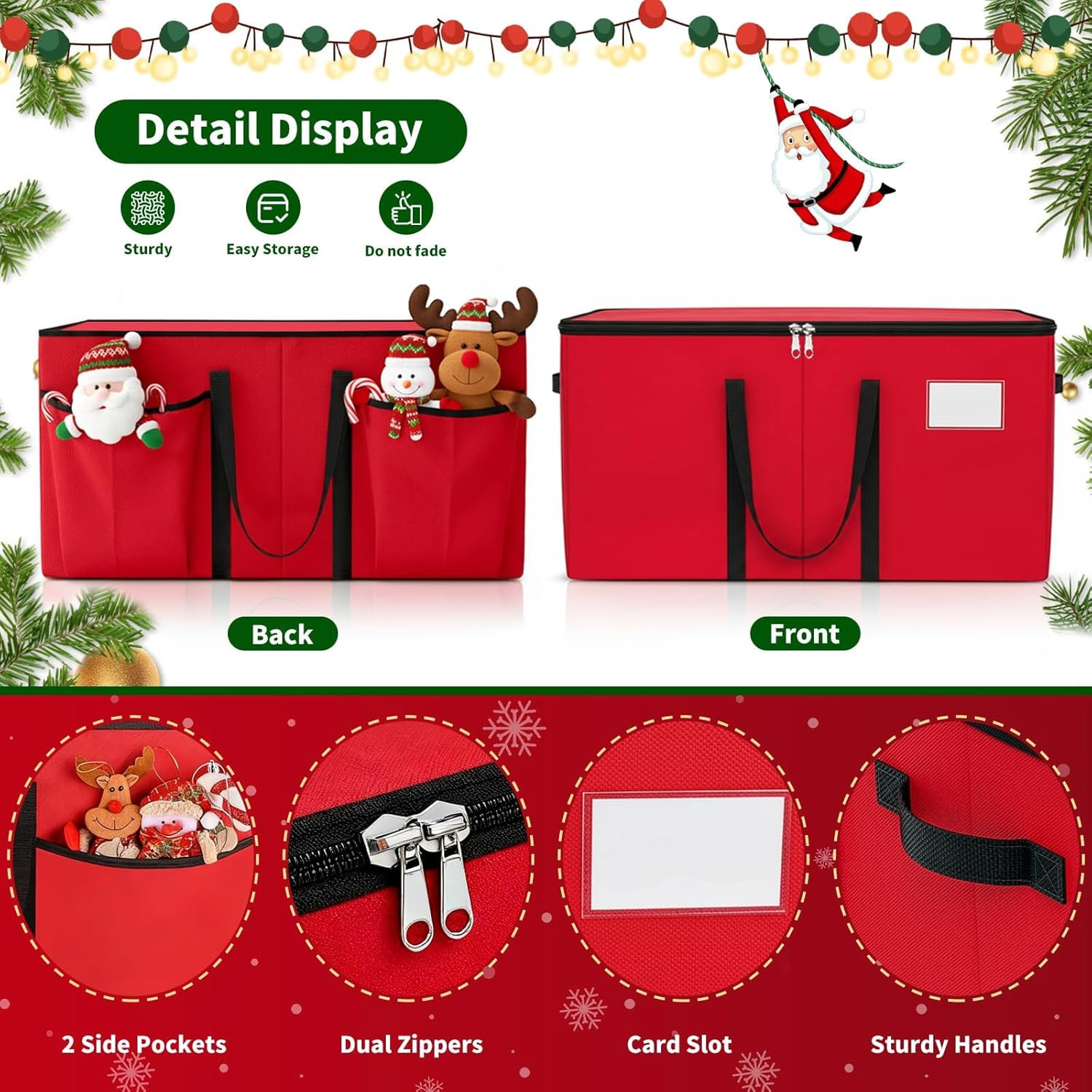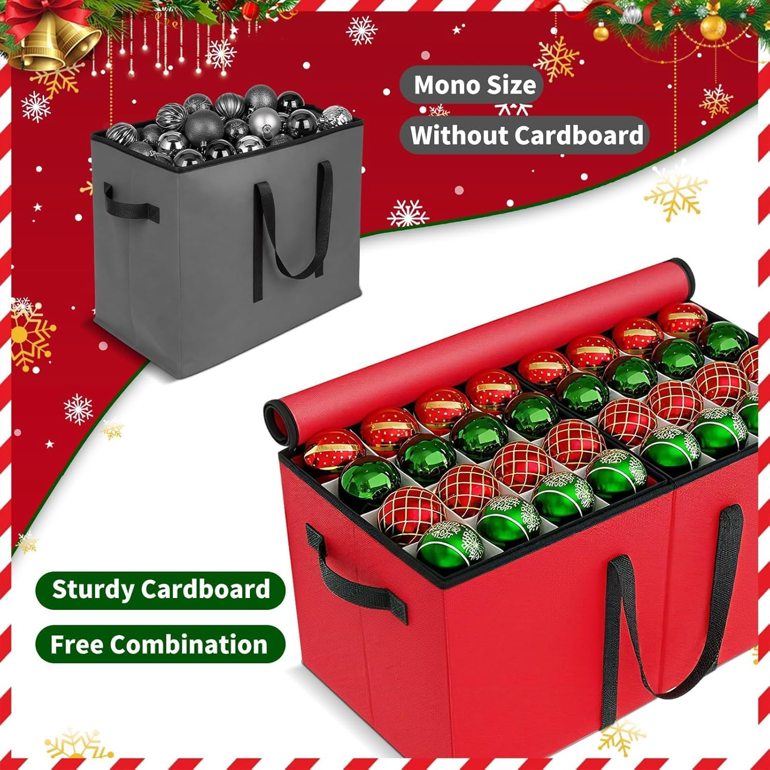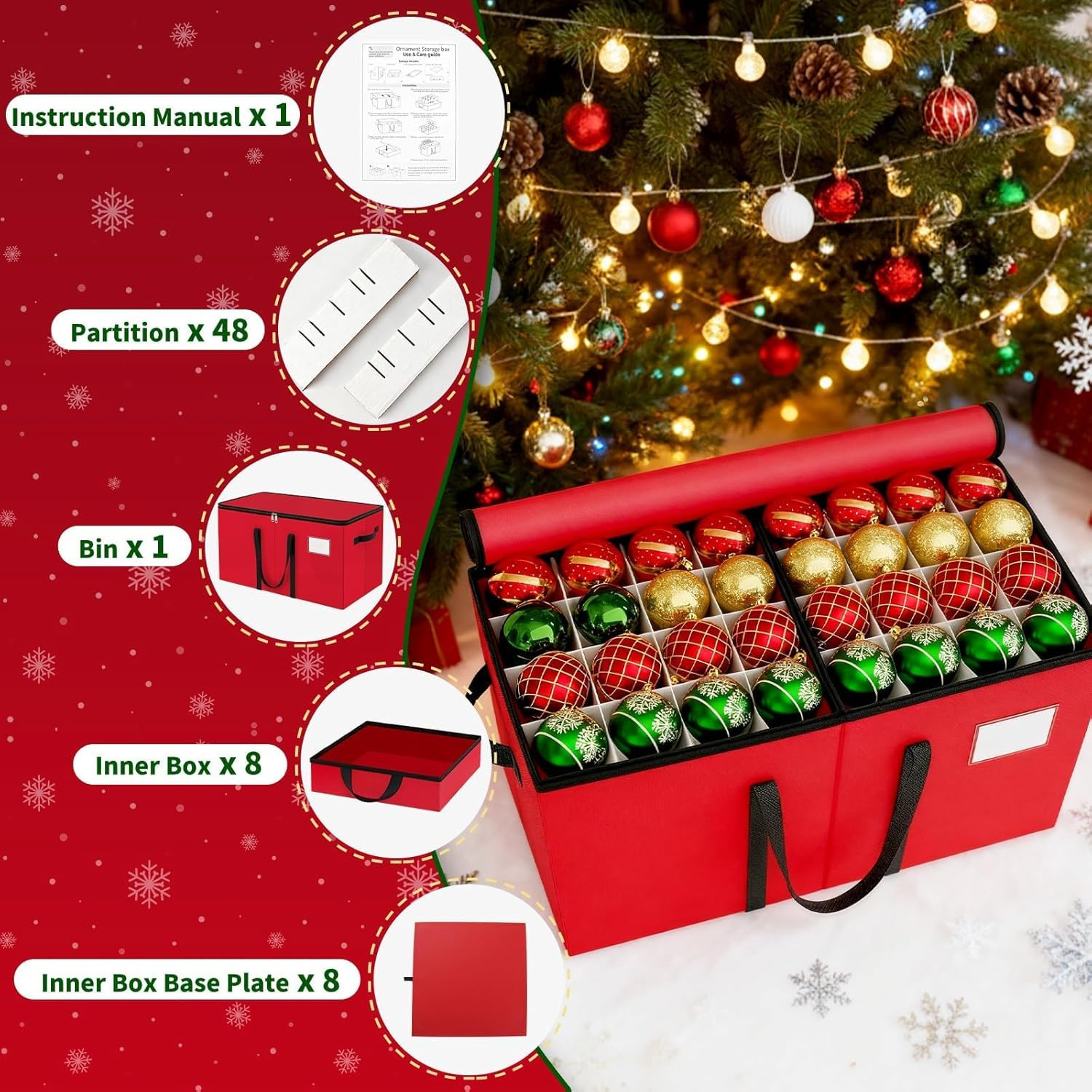 Large Christmas Ornament Storage Box with Adjustable Dividers and Trays