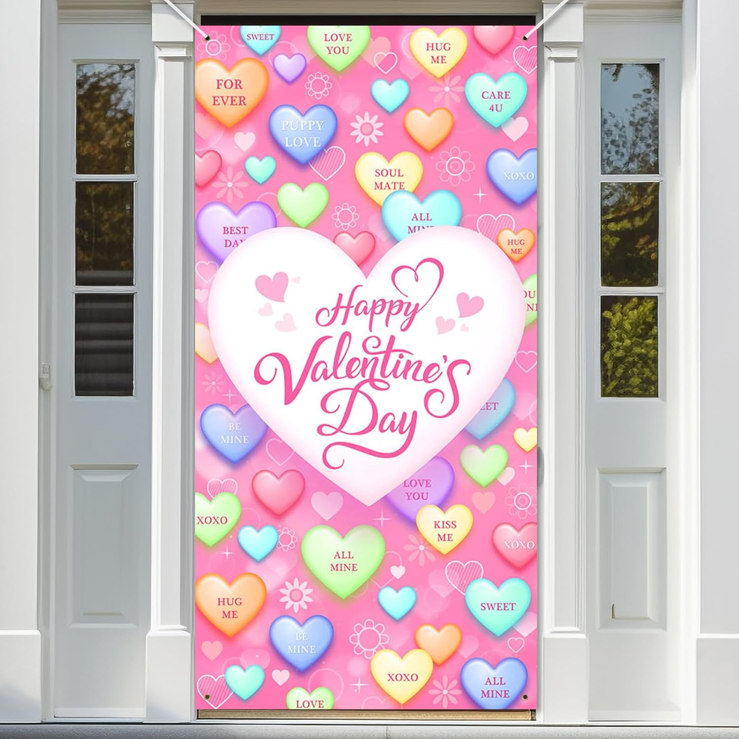 Valentine's Day Door Cover with Pink Conversation Hearts Banner Decorations