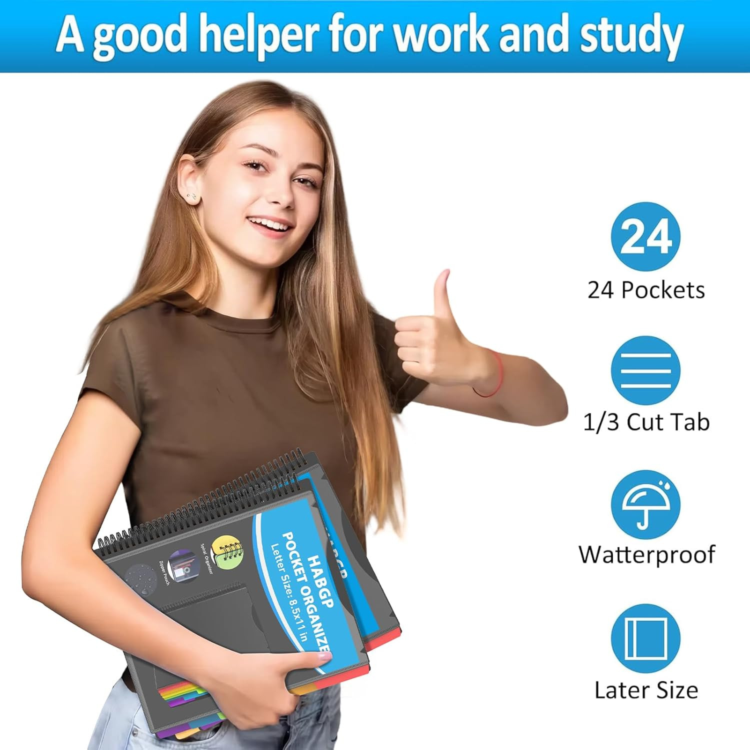 Multi-Color 12 Pocket Plastic Folder Binder with Dividers for Office and School