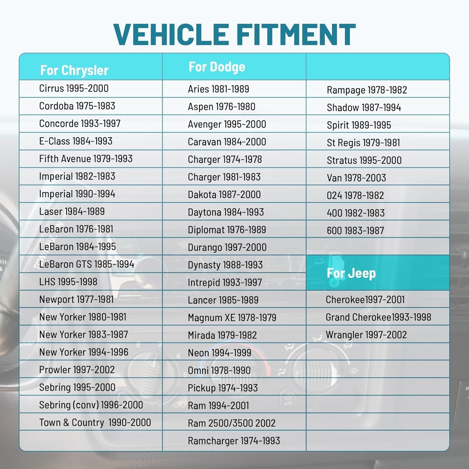 Compatible Vehicle Make: Chrysler, Dodge, Jeep