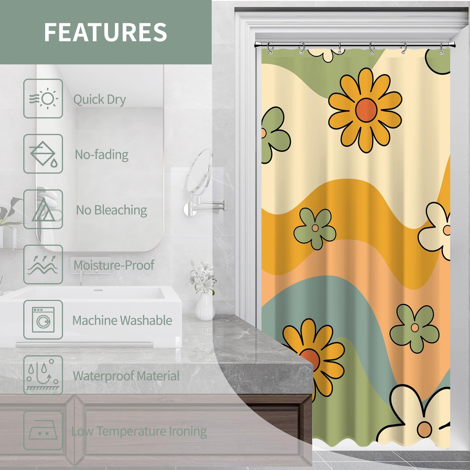 Small Stall RV Half Size 70s Cute Retro Floral Aesthetic Shower Curtain for B...