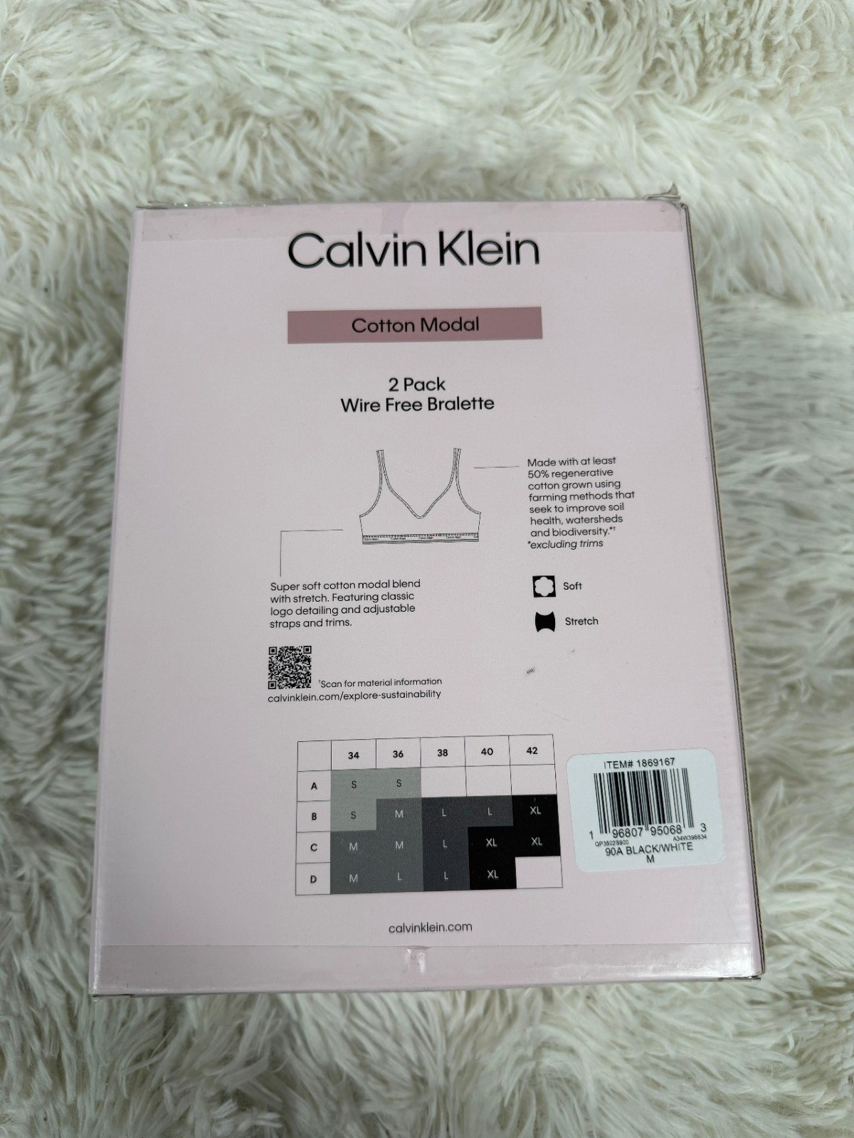 как выглядит Calvin Klein 2 Pack Wire Free Bralette Womens Sz M Cotton Modal Black/White NEW фото
