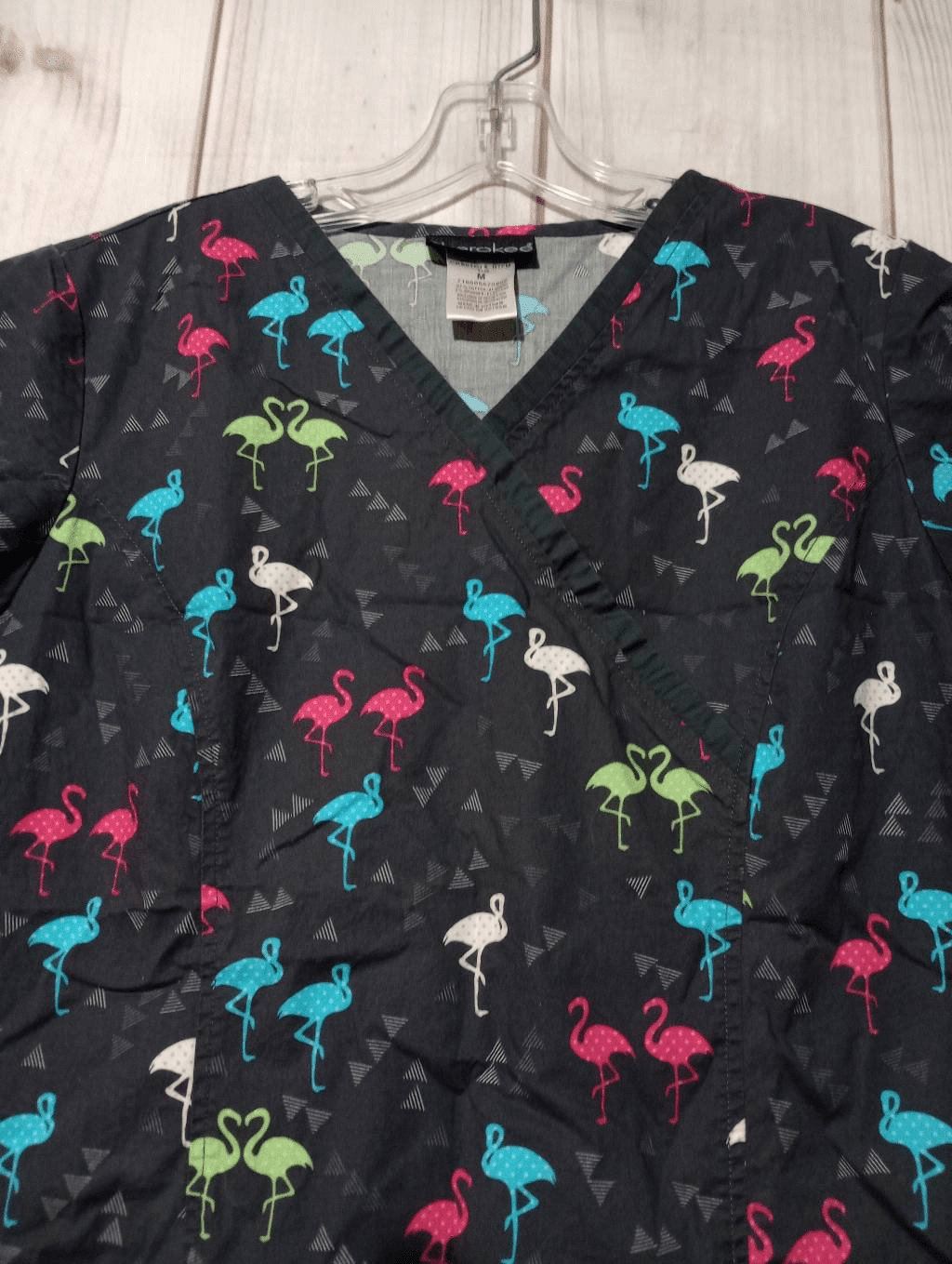 Cherokee Scrub Top Ladies Medium Gray Pink Flamingo