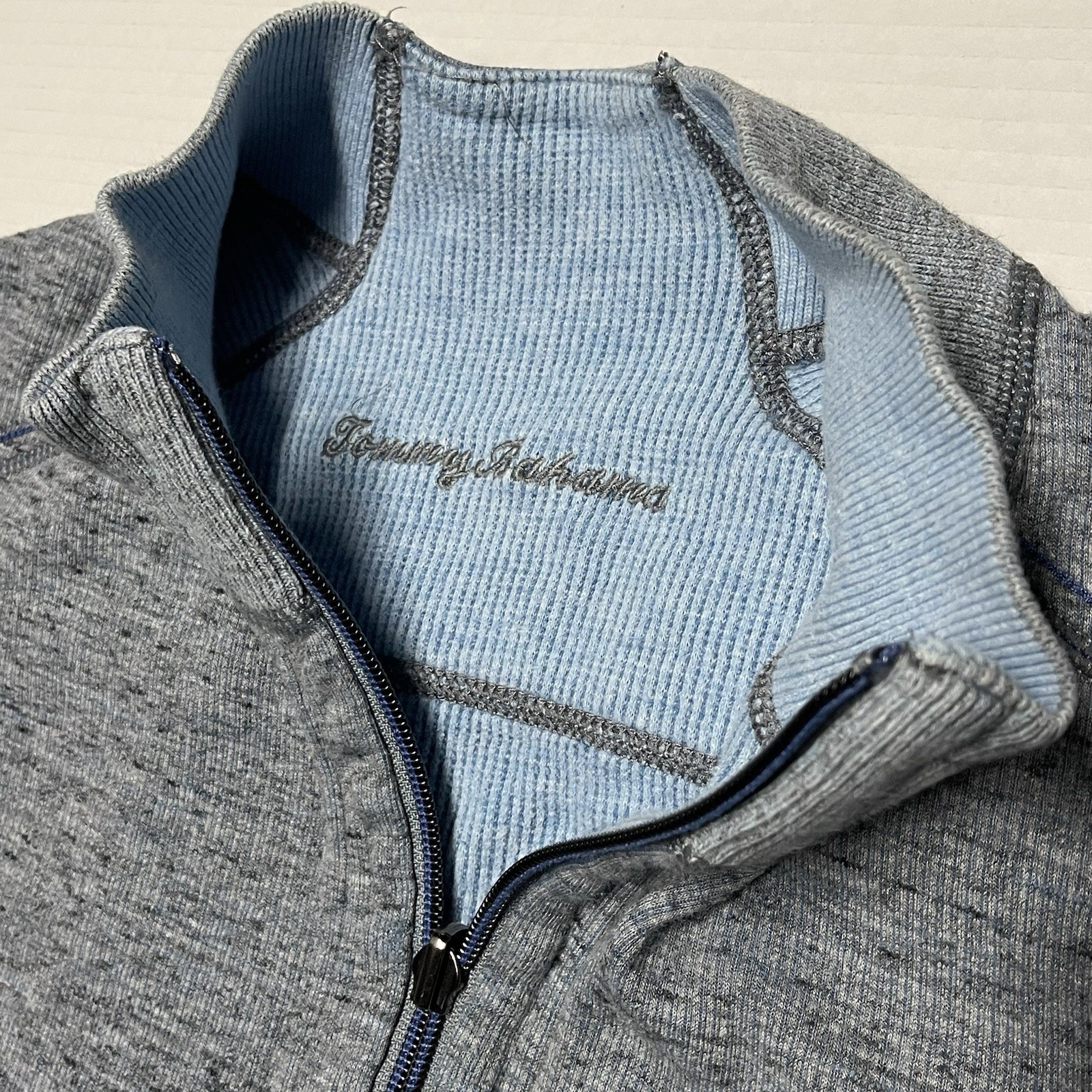 Tommy Bahama Sweater Mens 2XL Blue Quarter Zip Pullover Reversible Casual