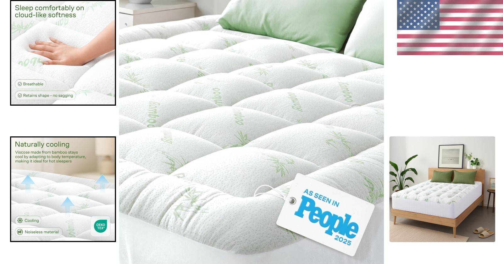 как выглядит Green Bamboo Viscose Pillow Top Mattress Topper - Noiseless, Deep Pocket Design фото