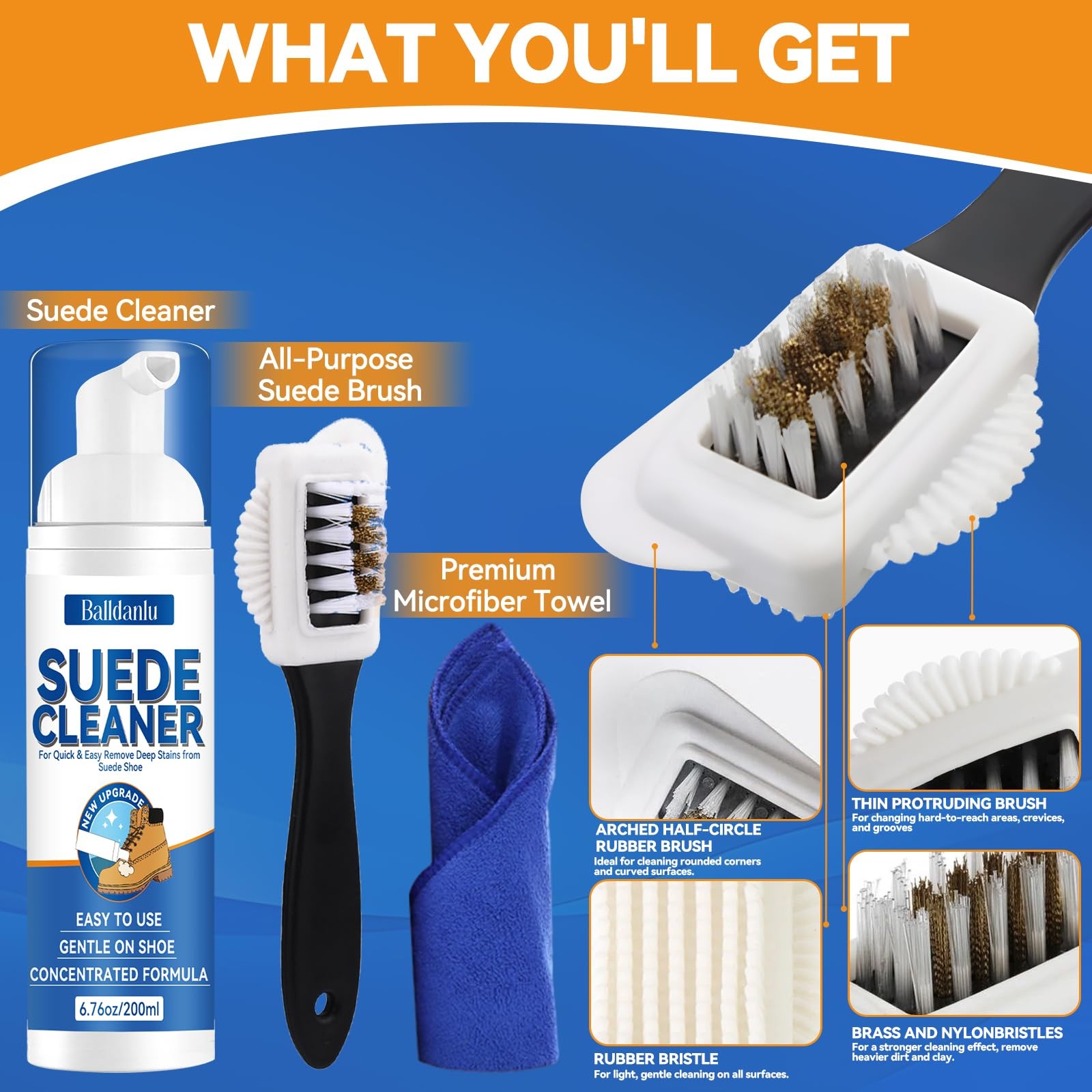 Suede Cleaner Kit 6.76 Oz Suede Nubuck Shoe Cleaner with Brush Towel Cle