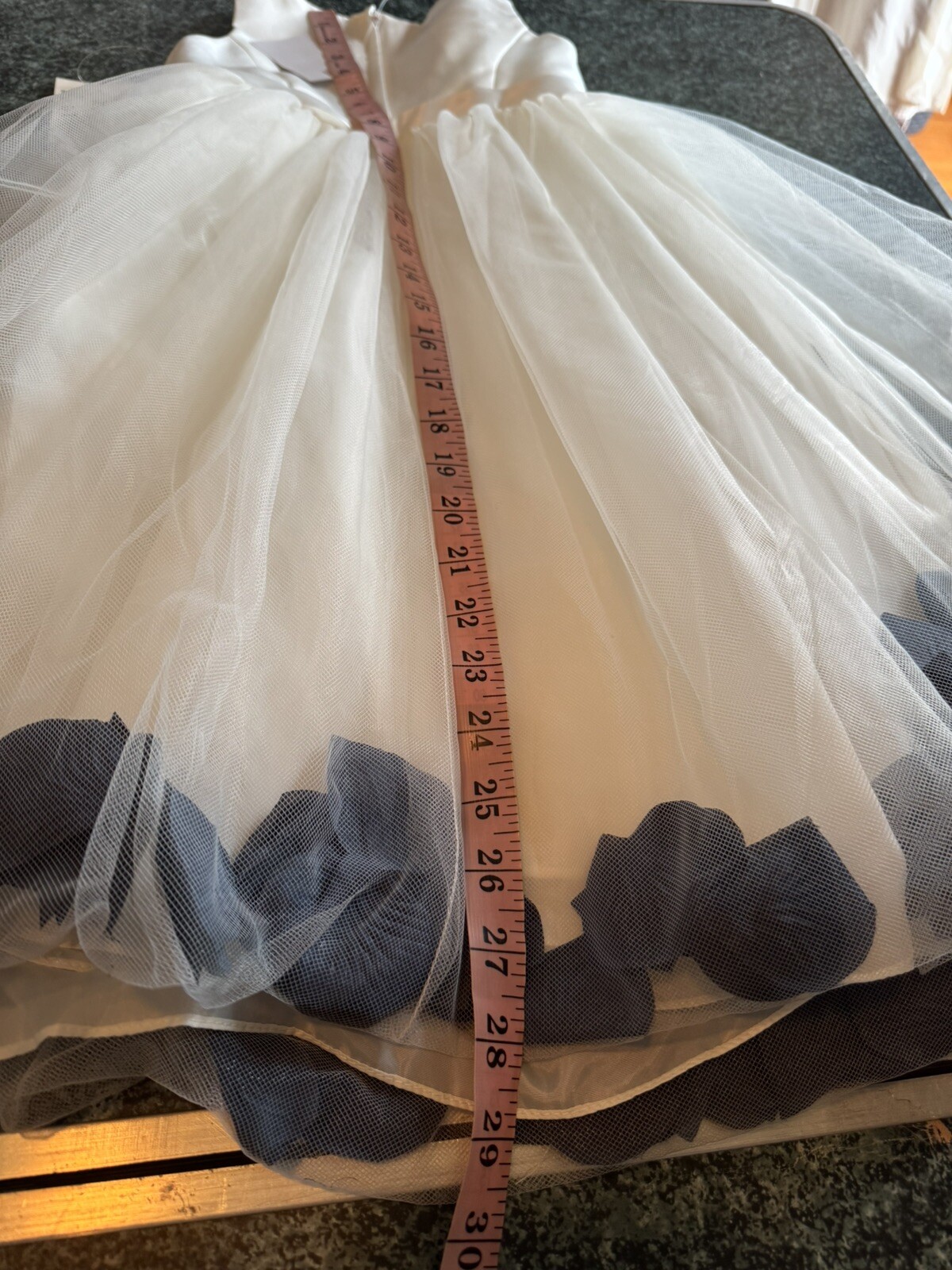 как выглядит David s Bridal Flower Girl Dress Trapped Petals Size 5 Wedding Navy Blue NWT фото