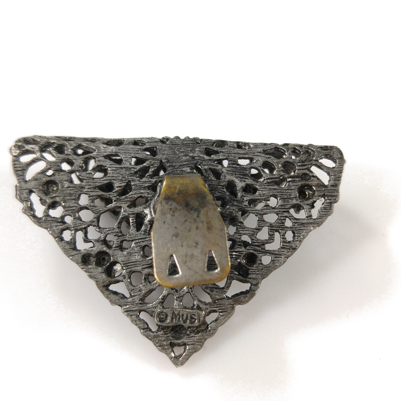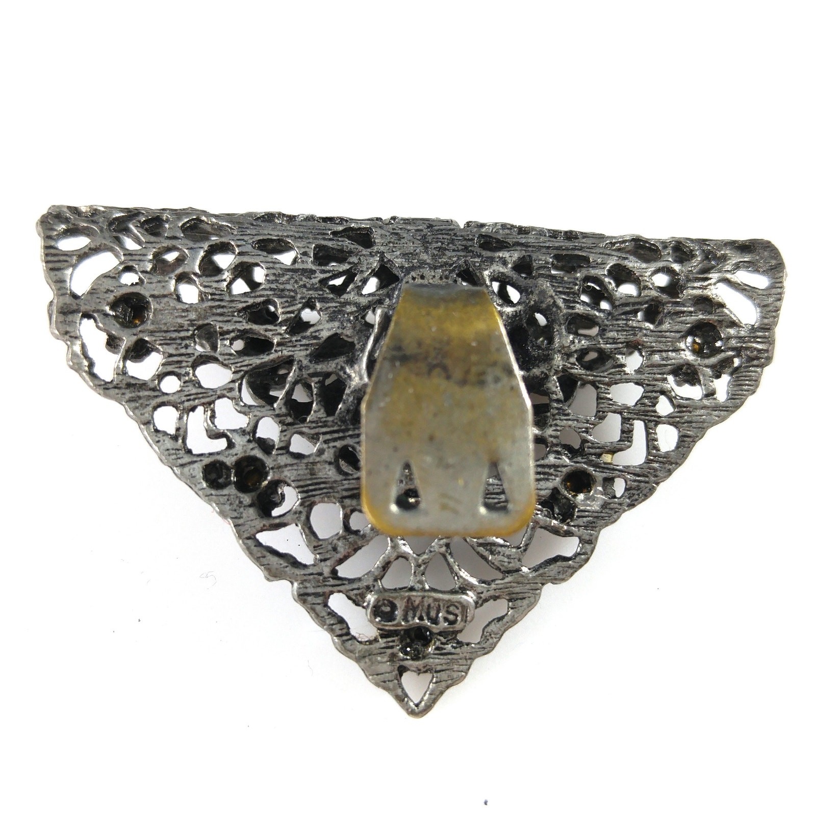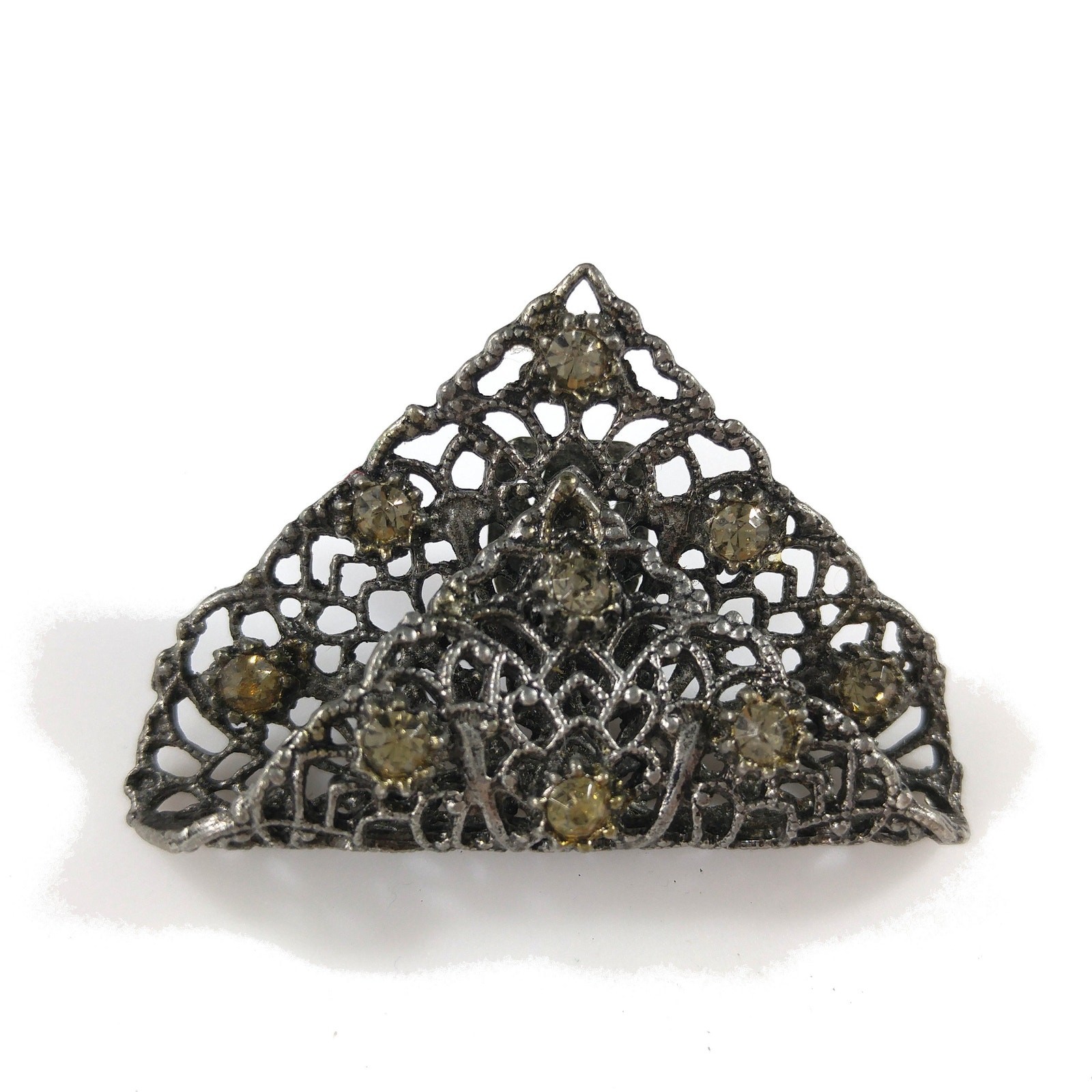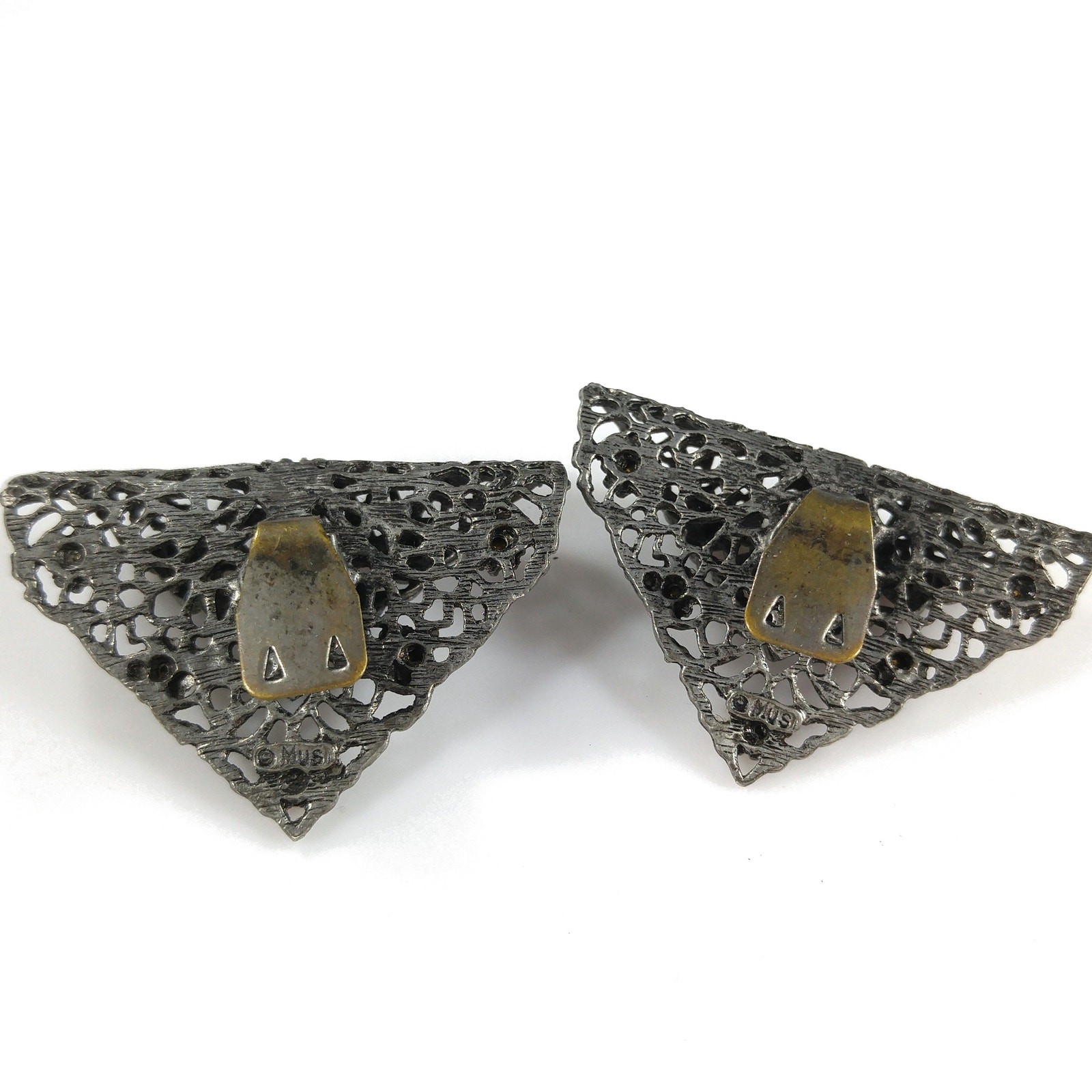 Vintage MUSI Filigree Shoe Clips, Gold Rhinestones, 1950s, 1 3/4 Inches