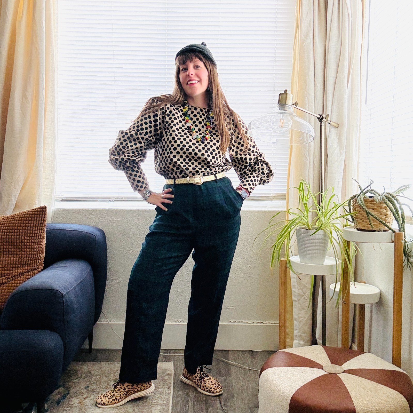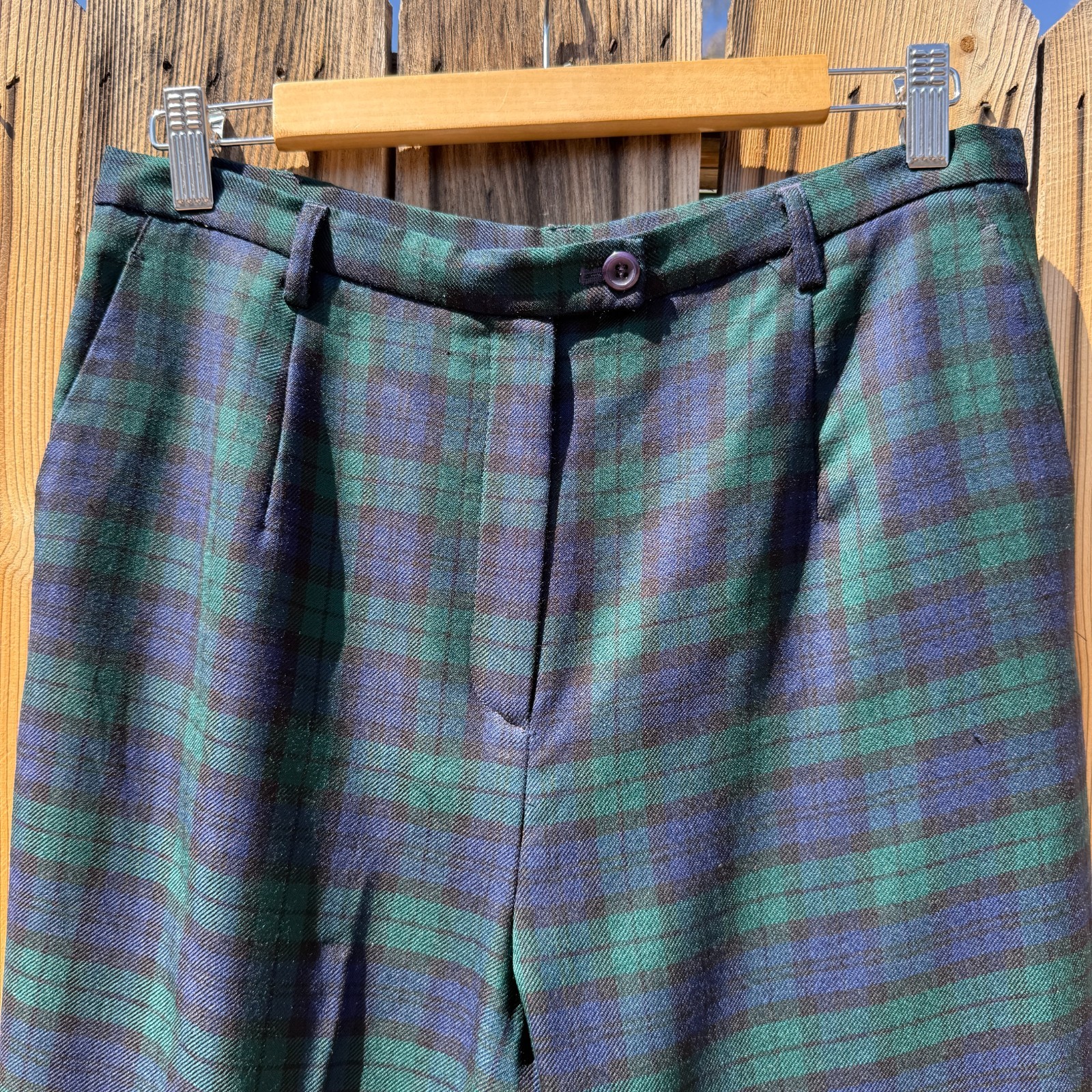 Y2K 00s Pendleton Wool Blue Green Plaid Straight Leg Trouser Pants Large Petite