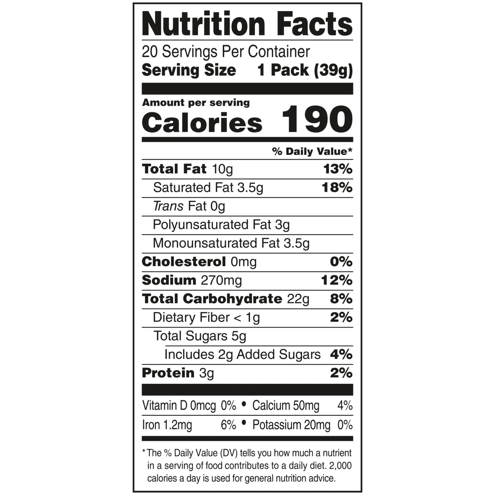 Net content statement: 20 - 1.37 OZ (39g) PACKS, NET WT 27.5 OZ (1.7 LBS) (780g)