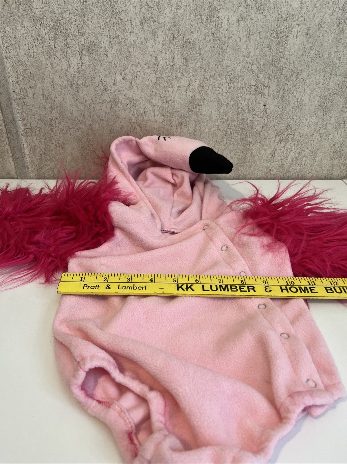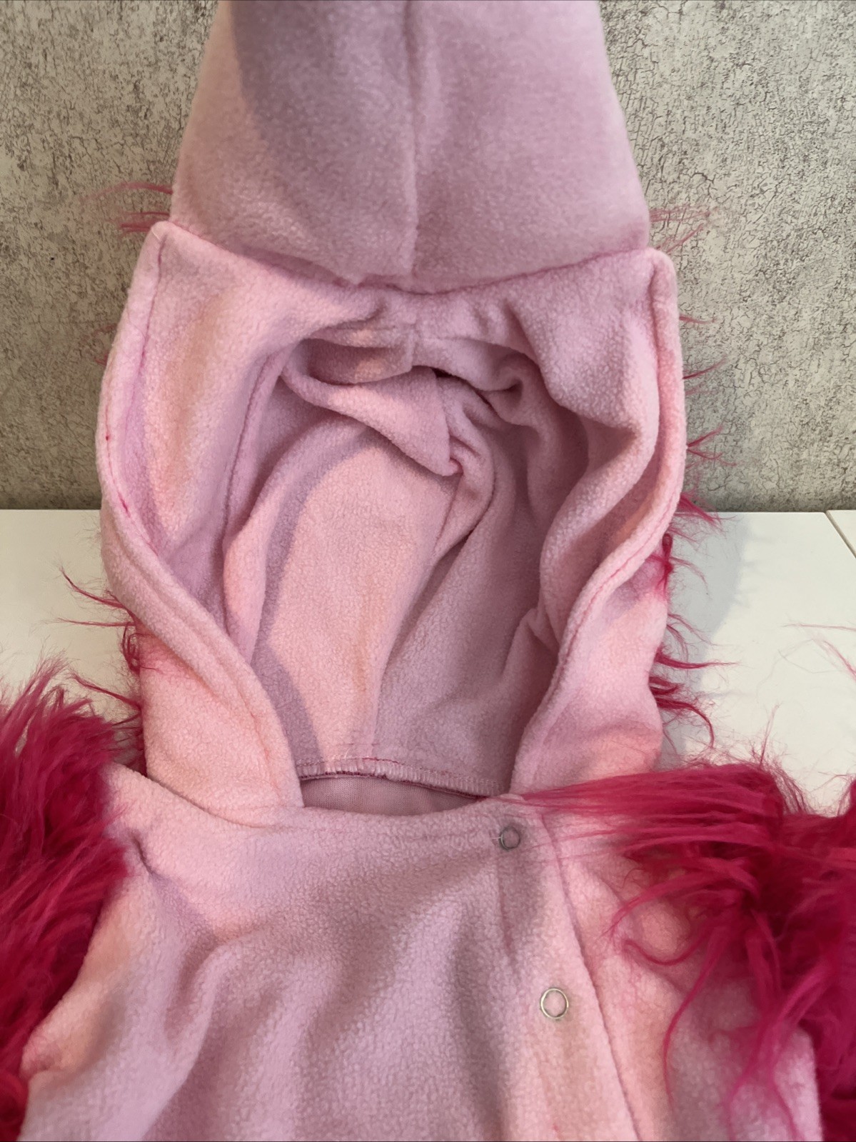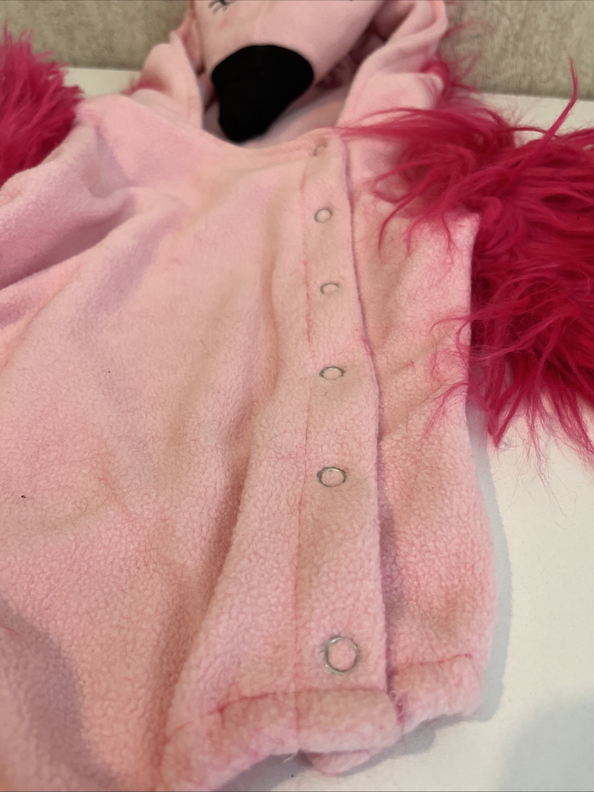 Baby Flamingo Costume Pink Flamingo Fur Sleeves Hood Side Snap 12-24 Months