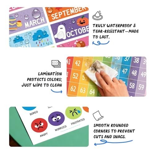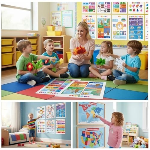16 Laminated Educational Posters for Kids - ABC, Numbers, Shapes, Colors, Maps -