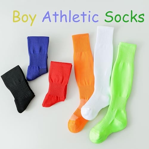 Kids Soccer Socks Toddler Football Socks 5-7 Years Red/Orange/Green 3 Pairs