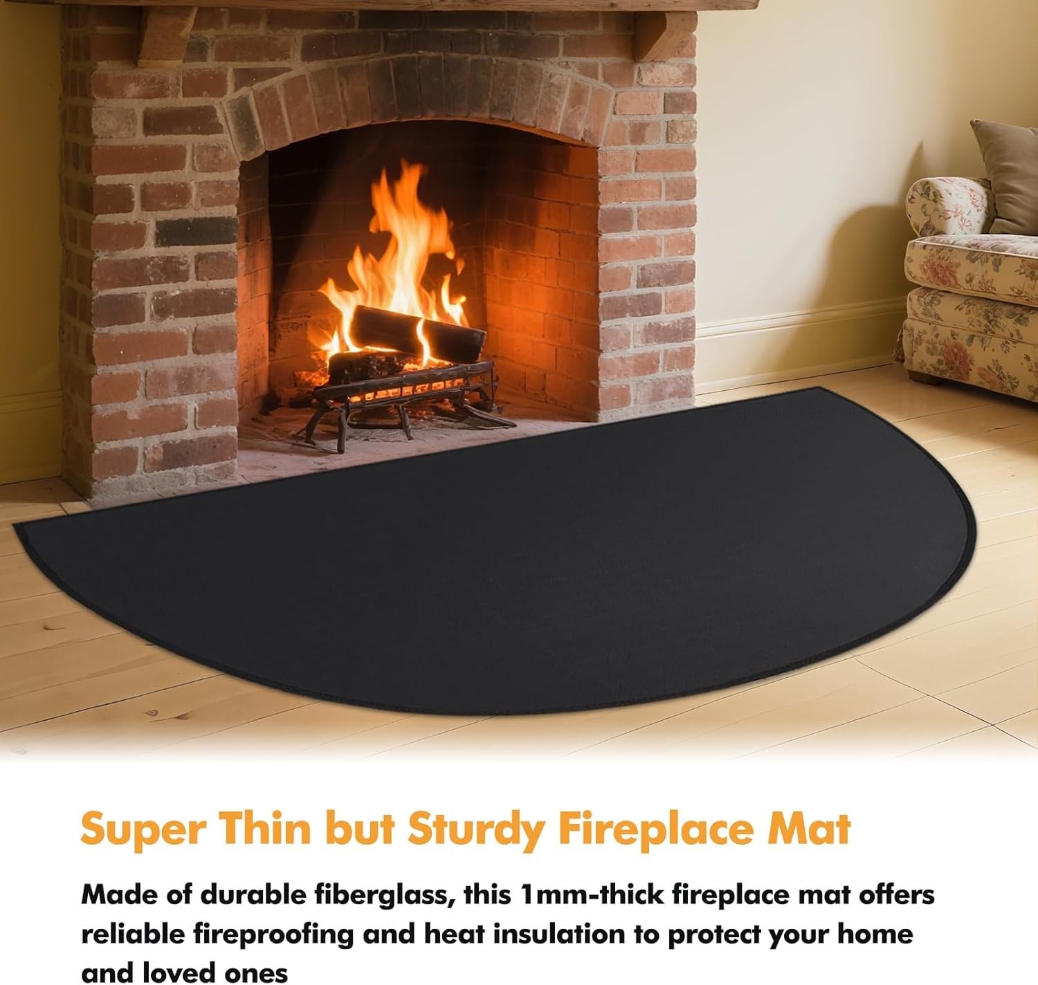 Hearth Rugs for Fireplaces Fire Resistant, 42 X 24 Inch Fireproof Fireplace Mat