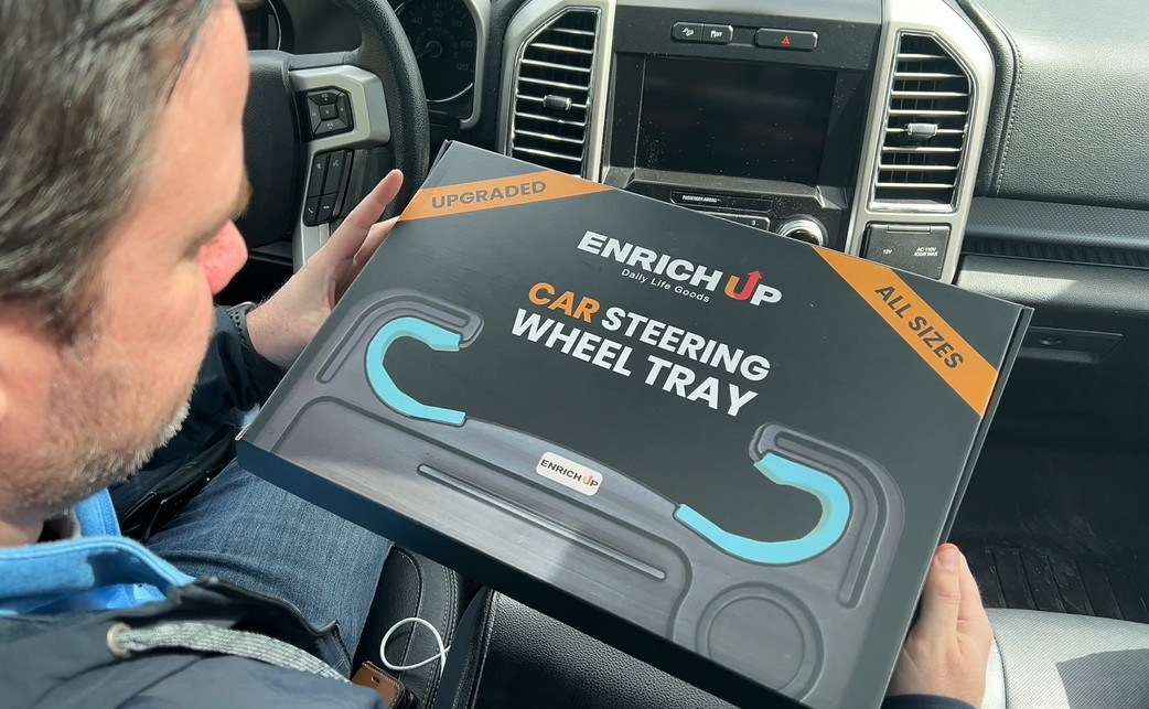 2-in-1 Car Steering Wheel Desk Tray - Adjustable Laptop Food Table for Travel