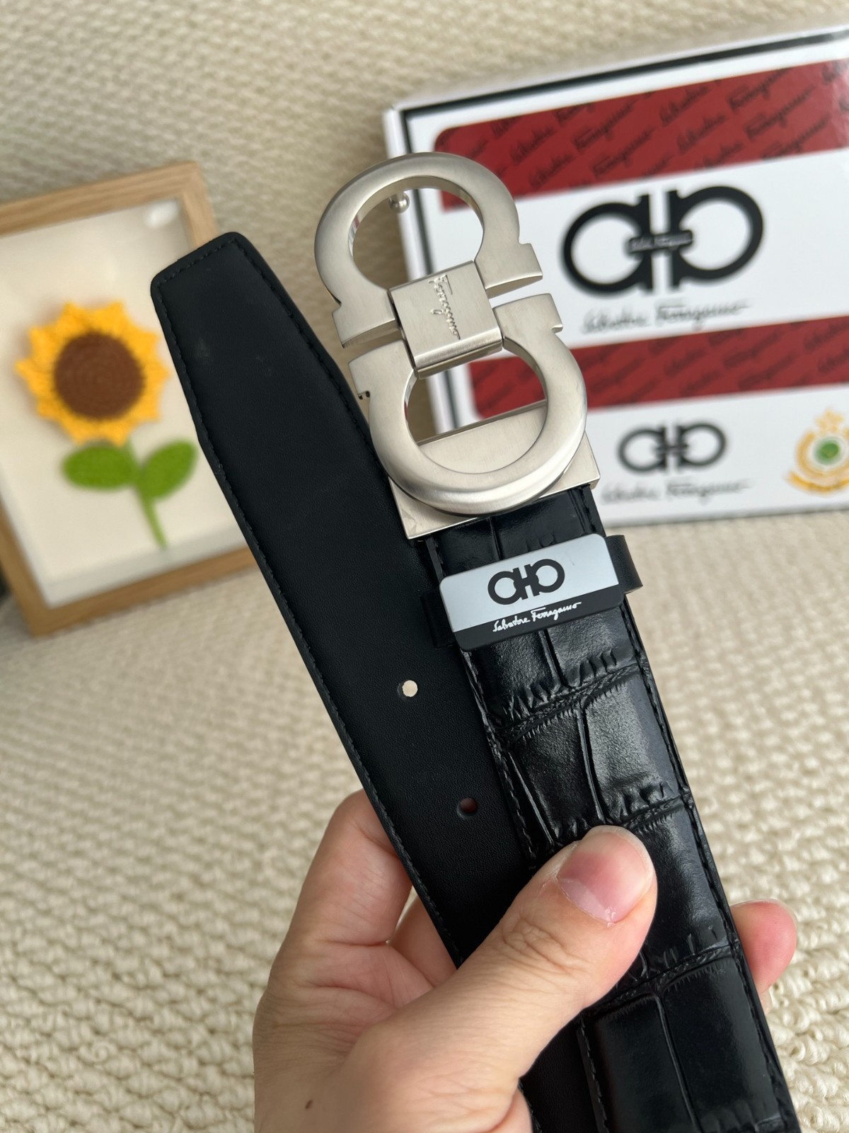 как выглядит Ferragamo Mens Reversible Leather Belt 120cm 3 Color Double Gancini Buckle фото